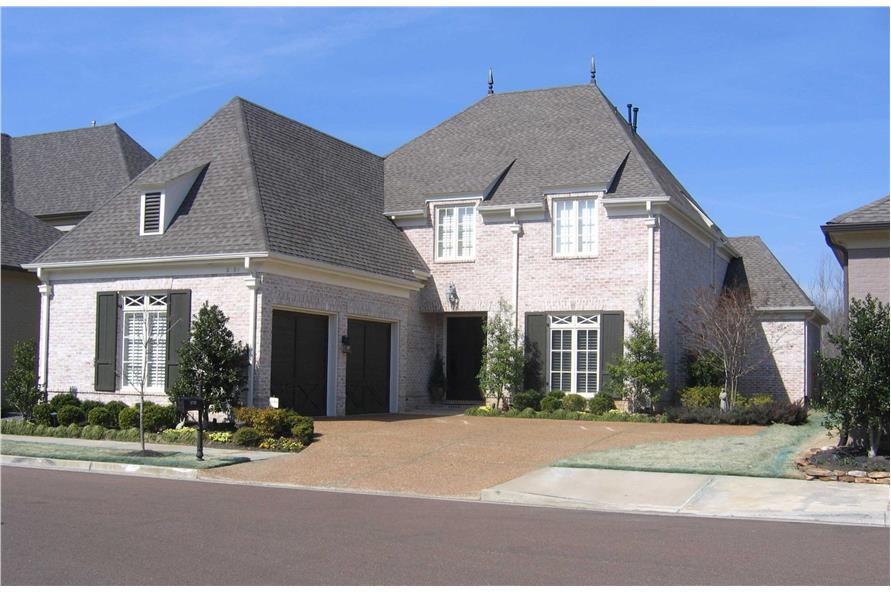 Here is a French design that has a courtyard garage to cover up its hidden beauty. There is a big section of the first floor used by the dining room/living room and the family room/kitchen combinations.