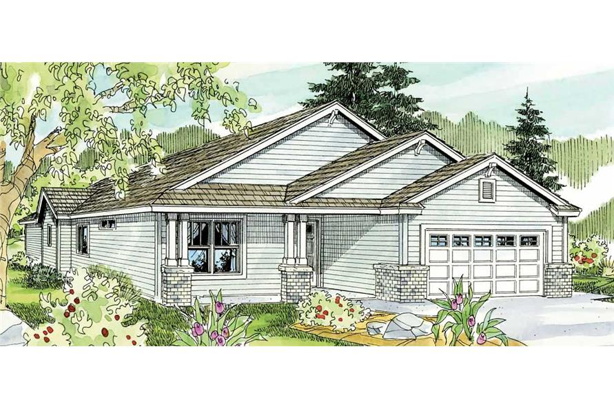 Cottage Home Plans - Vaulted ceilings in the foyer and great room create a sense of spaciousness in what is actually a fairly compact cottage home plan. Windows flank the gas fireplace that graces the rear of a great room with a dining area on one side. A peninsular counter/eating bar marks the boundary between the dining area and a kitchen with a roomy pantry.