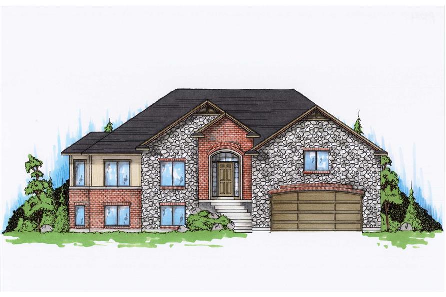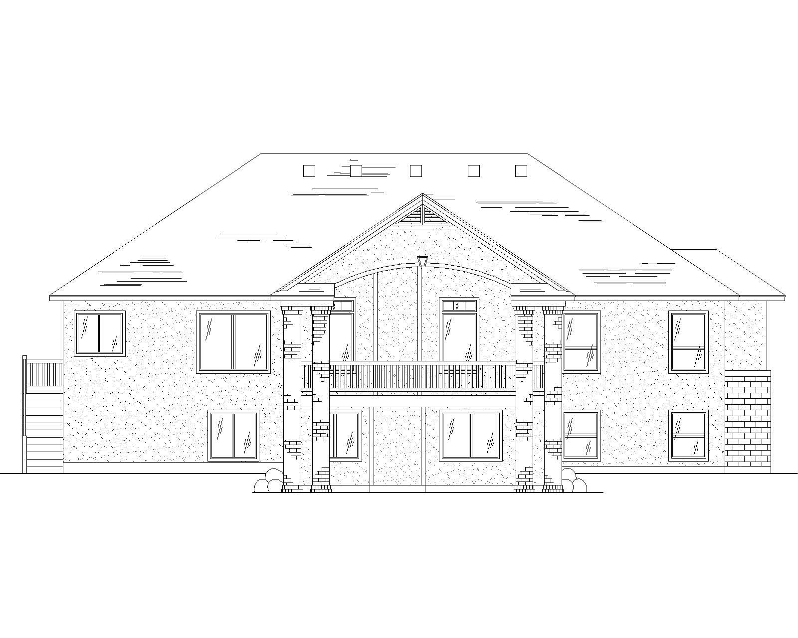 This Traditional house features a large, central great room that has offshoots in all directions. The basement boasts a game room with a fireplace that covers half of the floor. There is also space for a future office.