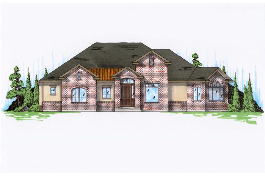 This Traditional house features a central great room that has the kitchen on one side and the master suite and secondary bedroom on the other.