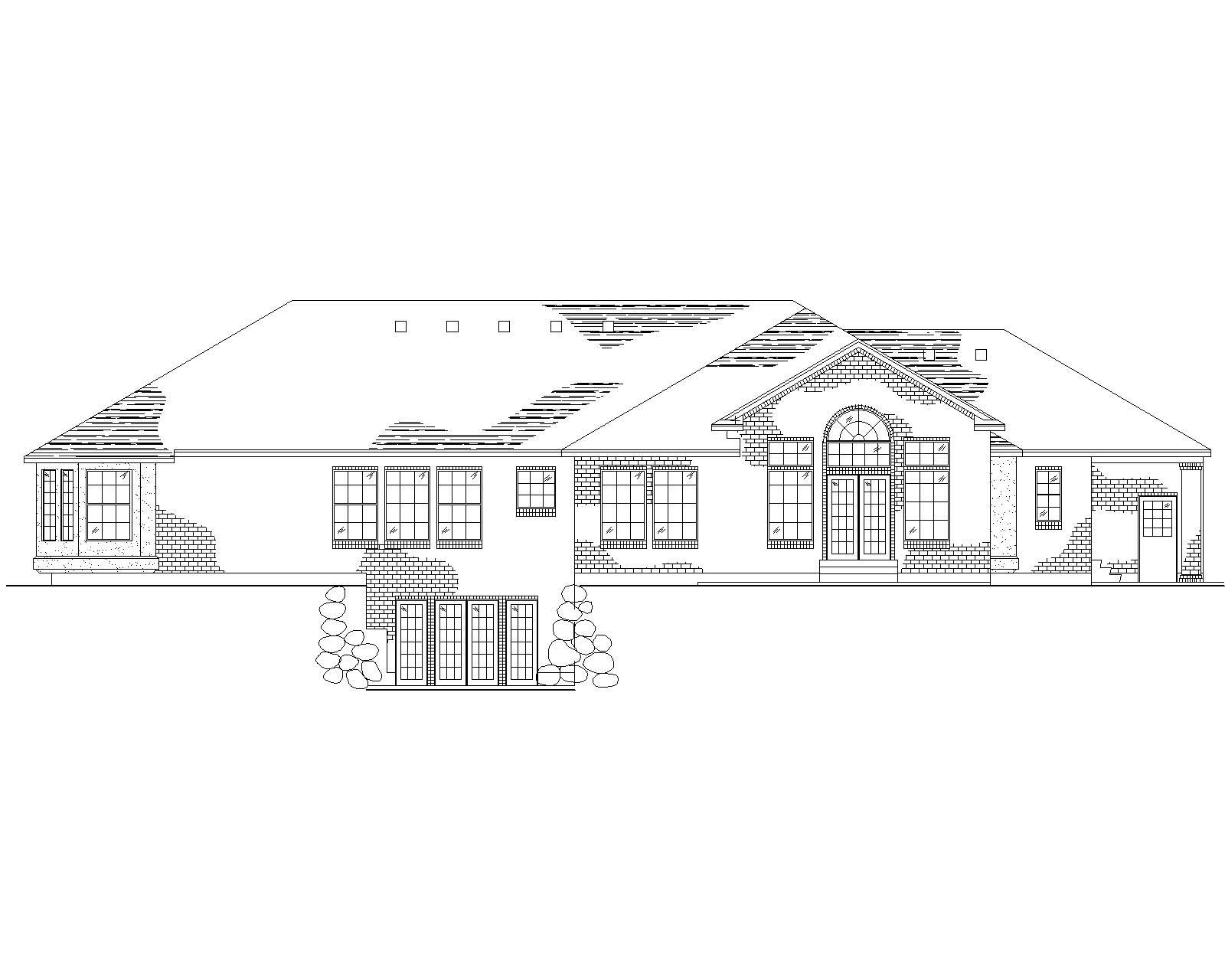 This is a mix of Spanish and Mediterranean styles. The floor plan features a family room with skylights and a vaulted ceiling over it and a large fireplace on its side. The master suit has it's own side of the main floor with a bay window and his and hers walk-in closets.