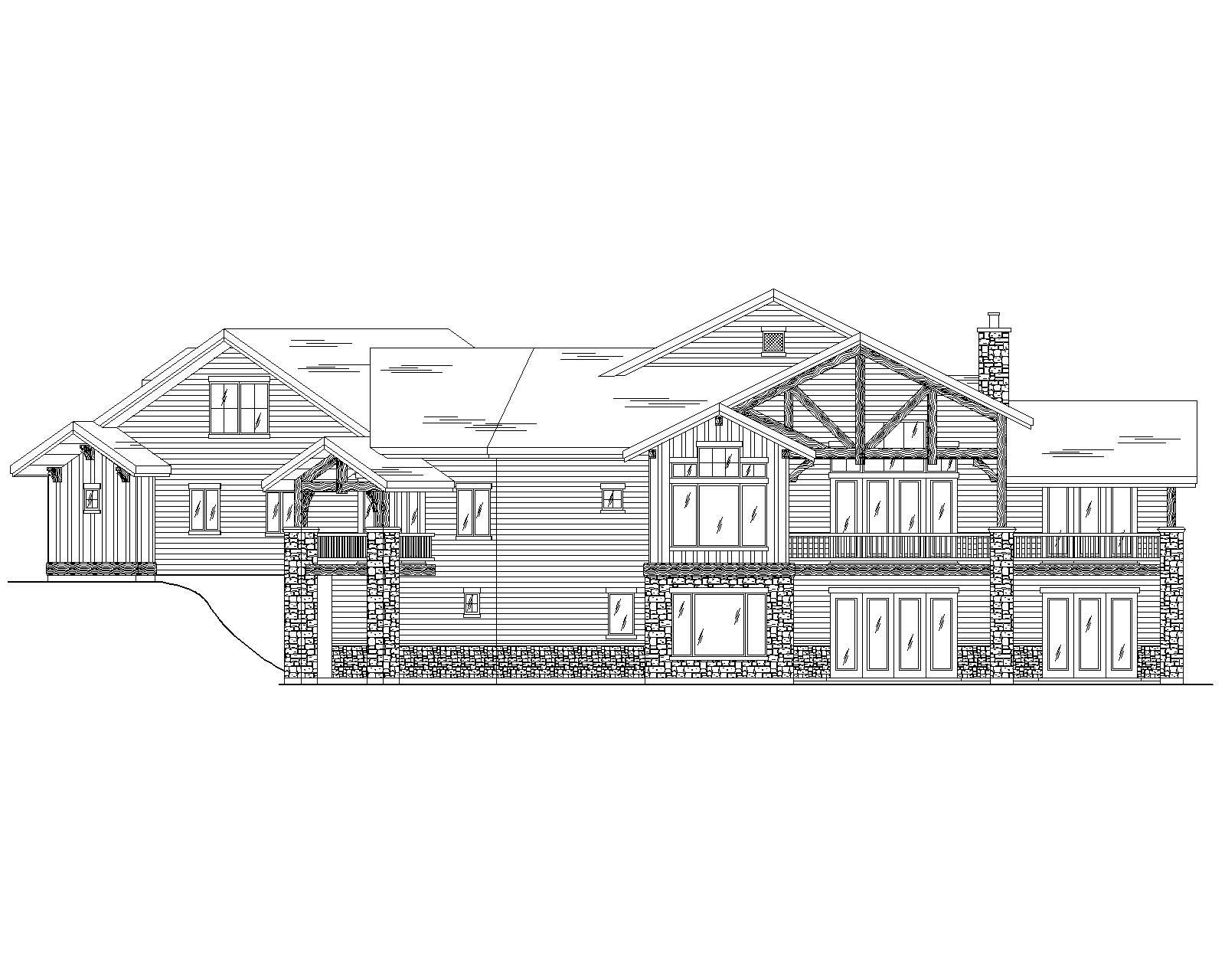 This mountain style plan features a triple car garage with a bay that is a little longer than the inside two. The interior has a couple different ceiling types. The master bedroom has a raised ceiling with a private deck. In the basement, the recreation room has a wet bar and a fireplace to top off its features.