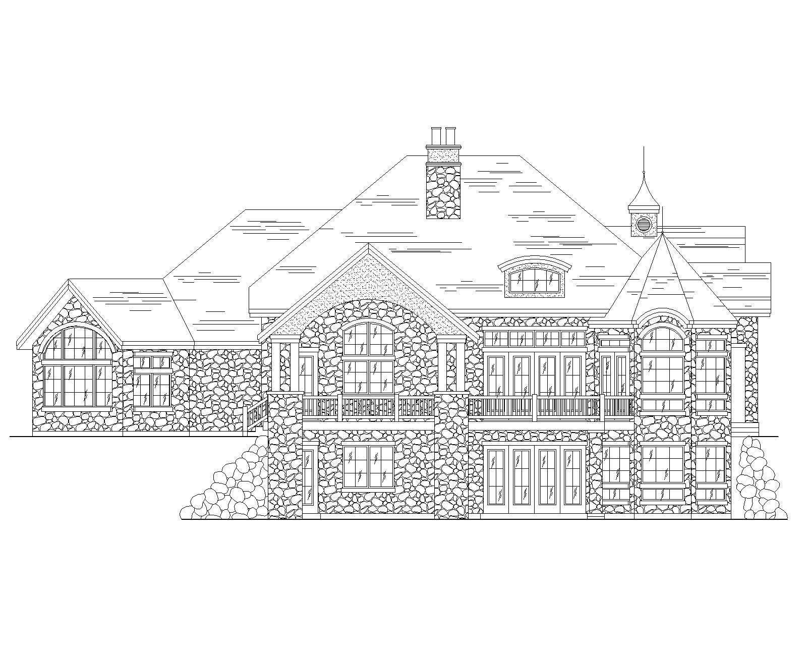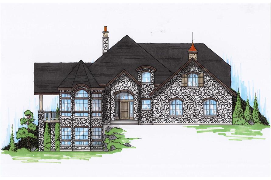 This European plan has a unique design that looks perfect on a side sloping lot. The large turret with lots of windows makes the sun room inside a perfect place to soak up the sun without worrying about the elements outdoors. This house has a master suite with a quite big sitting room jutting off of it.