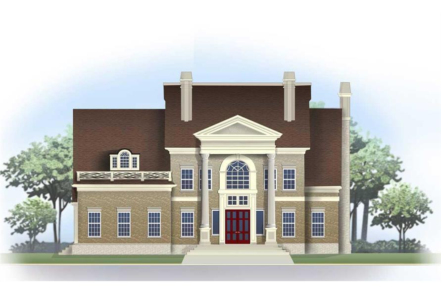 This is a luxury homeplan that seems to offer everything! The arched portico and large columns welcome guests into this Colonial estate home. A large kitchen is perfect for the family who loves to cook--and the island is the perfect way to add convenience and functionality. Find the morning room nestled in a rear-facing bay adjacent to the kitchen, and the dining room is close by as well. A two-story grand salon enjoys access to the rear deck for outdoor living, but also contains a warming fireplace for cool nights. The spiral stairs lead you to three bedrooms with all having access to...