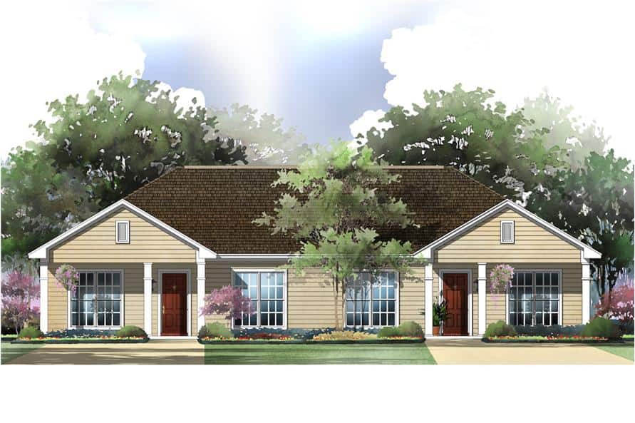 This smartly-designed two-bedroom, two-bath (per unit) duplex plan is ideal as a rental space or to accomodate the needs of two families. The home design incudes well-proportioned rooms, walk-in closets, plenty of storage and laundry area. The open floor plan design gives the home larger feel than its square footage would suggest. Even better, there is no wasted space -- giving you an attractive return on your investment. All of these amenities are arranged nicely in 900 square feet per unit. This duplex home plan may just be exactly what you've been searching for...