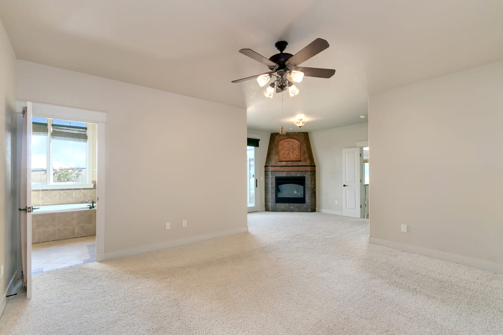 Main Floor MasterFireplace in MasterMaster BathroomWalk In ClosetSitting AreaPrivate Deck