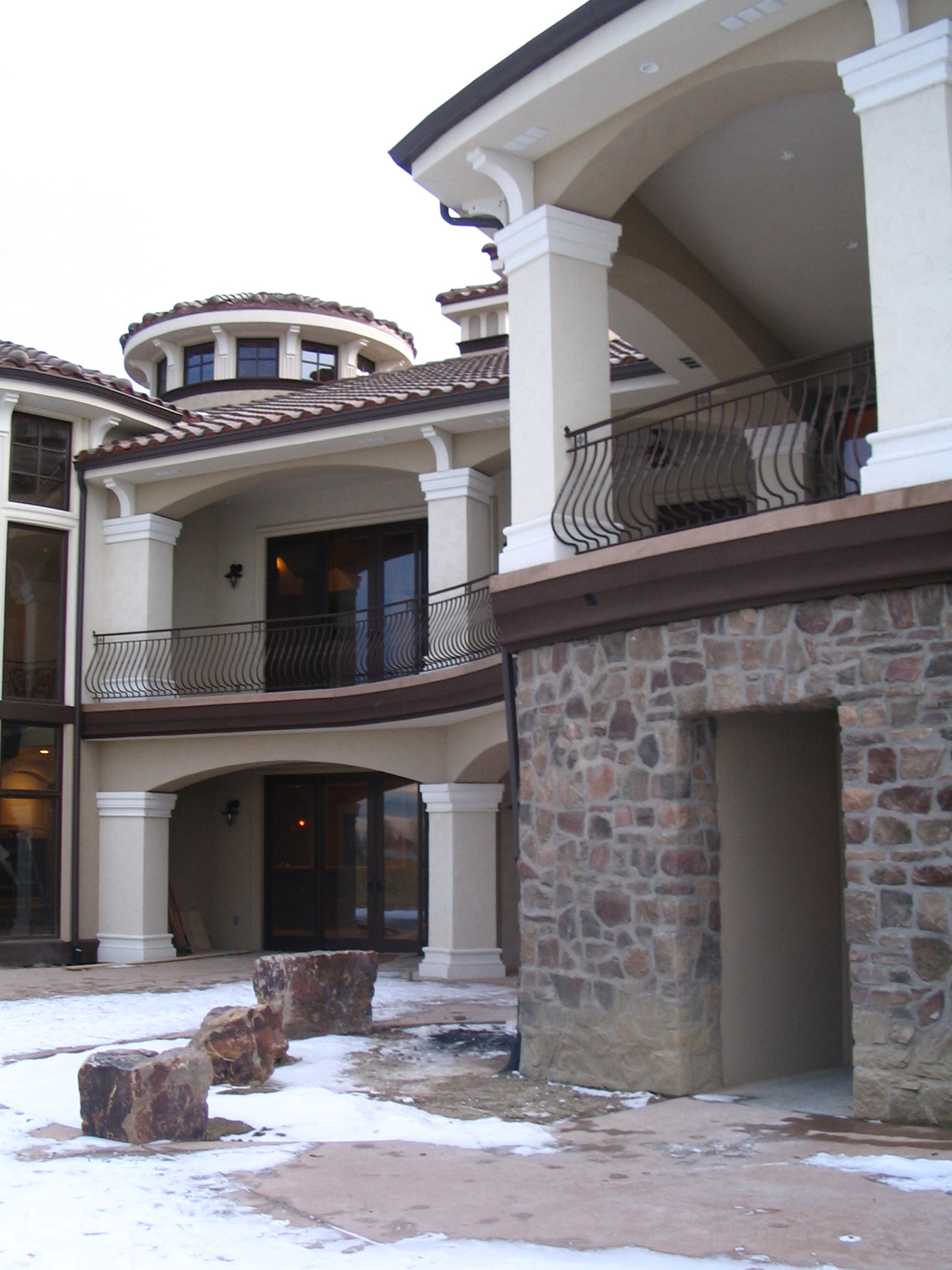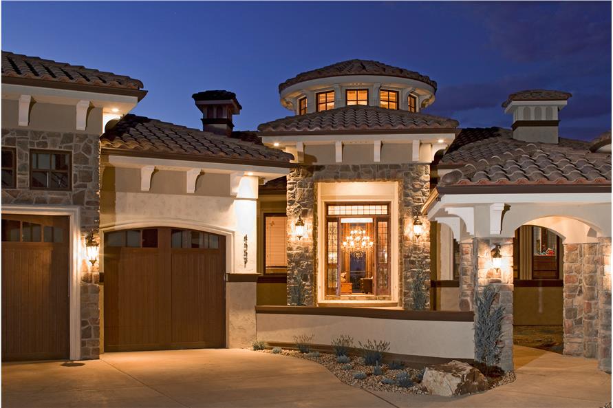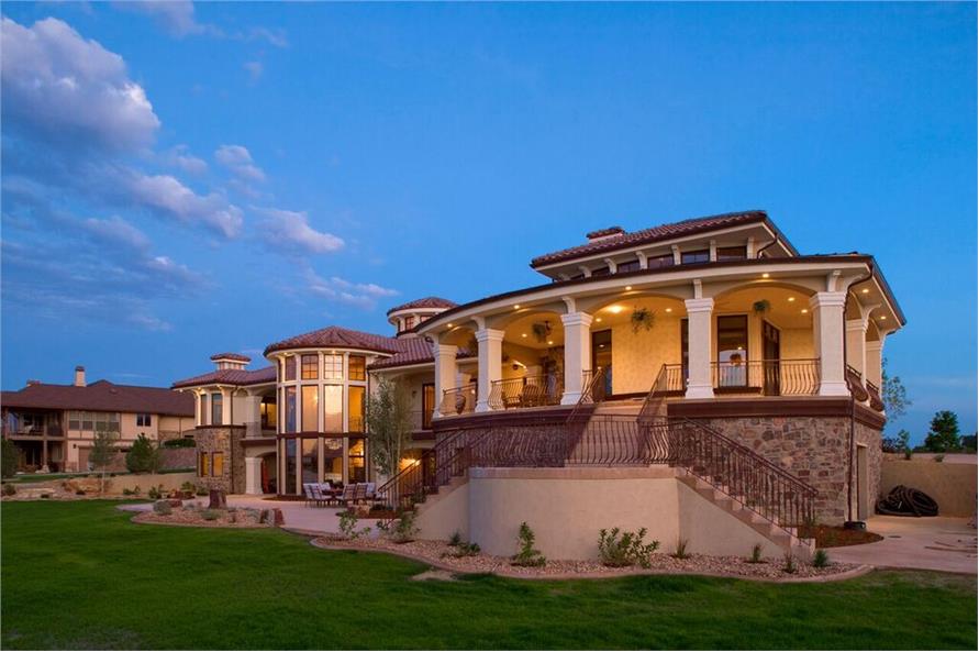 This magnificent Luxury Mediterranean home has 4261 square feet of living space with 2 to 3 bedrooms, if you use the study as a bedroom suite. It comes with an unfinished walkout basement that would add 3544 square feet of heated and cooled living space if you chose to finish it according to the suggested floor plan, with 1270 square feet of unfinished storage. Finishing the basement according to the plan would add 2 bedrooms and 3.5 bathrooms.