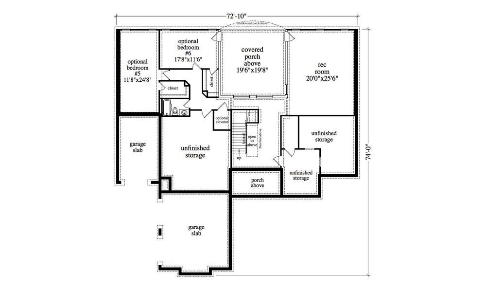 This lovely Country style home plan with Craftsman influences (House Plan #163-1047) has 5628 sq. ft. of living space. 3983 sq ft of this living space is finished (First Floor has 2686 sq ft and the Second Floor has 1297 sq ft). Basement lower level has 1645sq ft which is unfinished (includes bed 5, bed 6, rec room, stairs, and bmt foyer). If the basement's optional square footage is added, you reach 5628 sq ft. The basement areas labeled “unfinished” are not counted in any square footage.