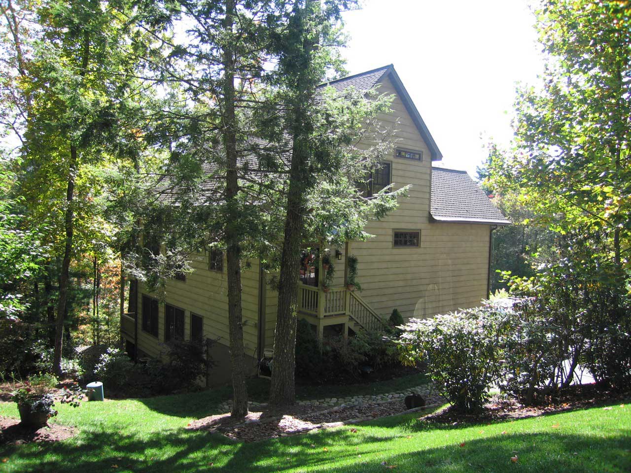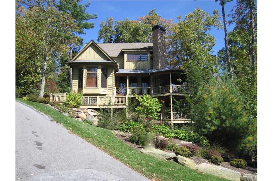 This cabin is the perfect mountain getaway with a generous deck and windows to take advantage of mountain, lake, or golf course views. The main level has a large great room with a bedroom and bath. Upstairs, you will find a private primary bedroom suite. The terrace level/daylight basement offers optional bedrooms, a bath, a rec room, and laundry. Outside, the elevation provides a cozy mountain look and feel. (Actual plan may vary from photos.)