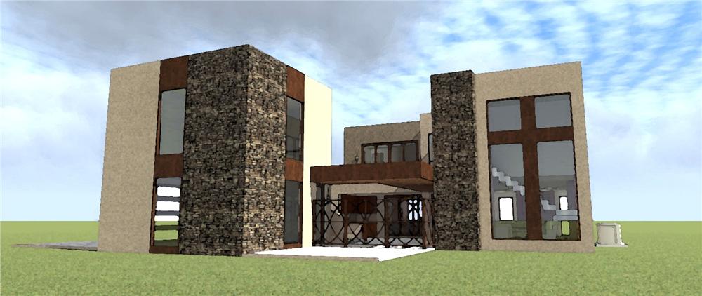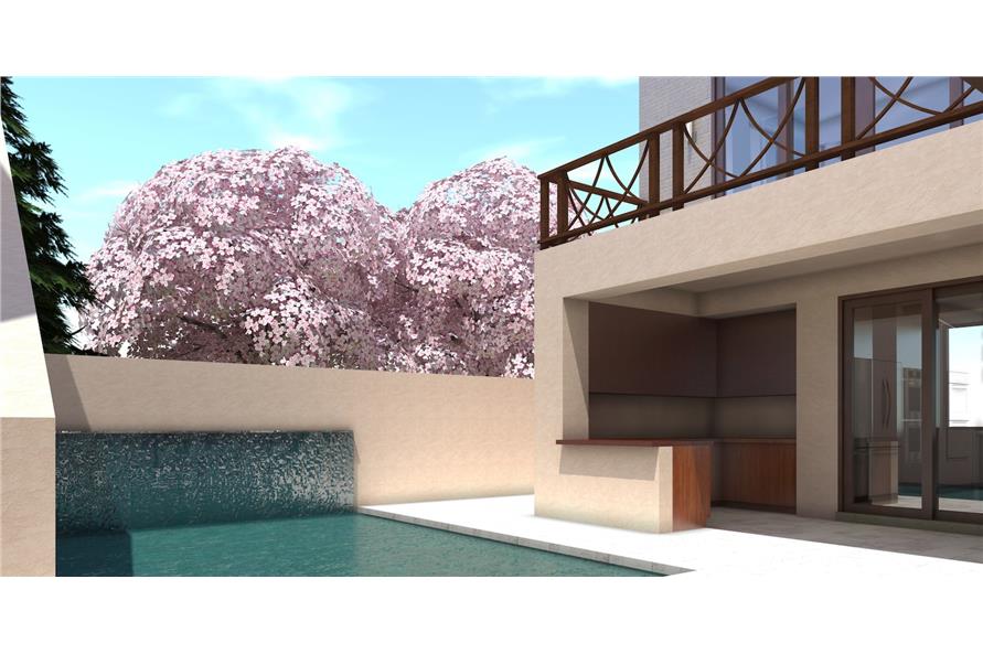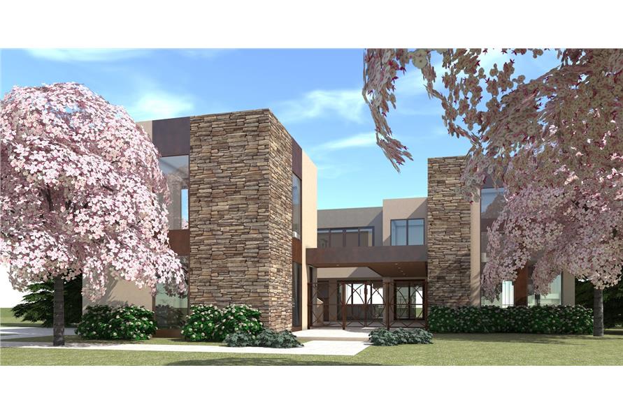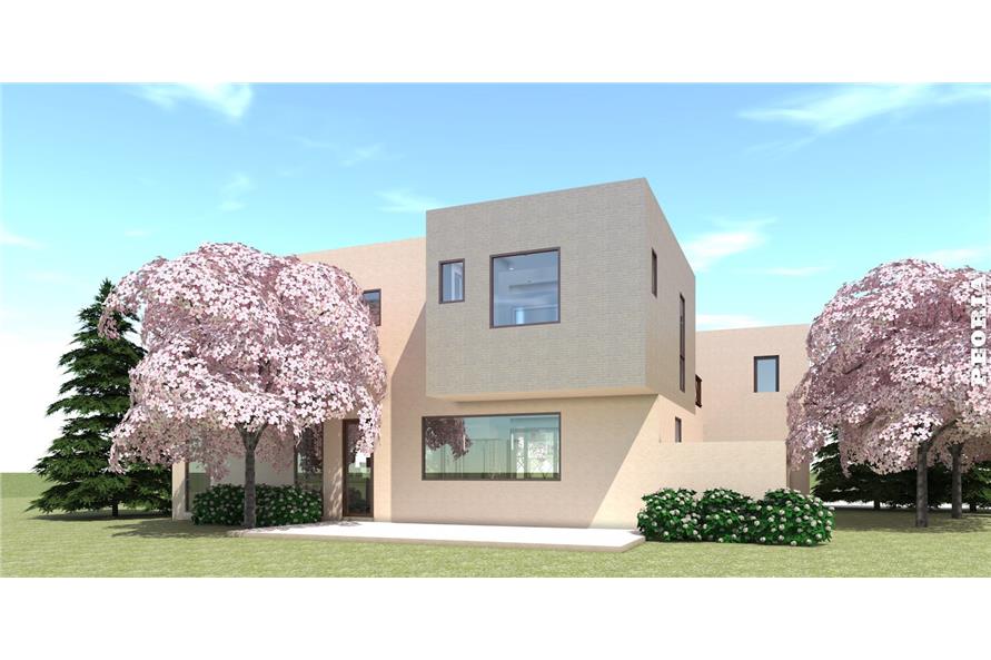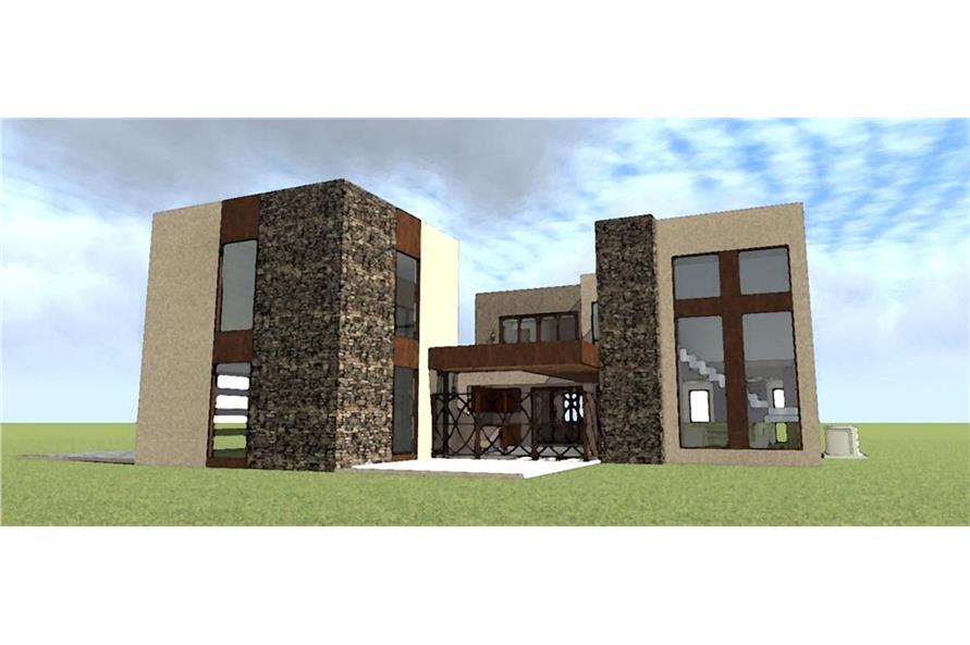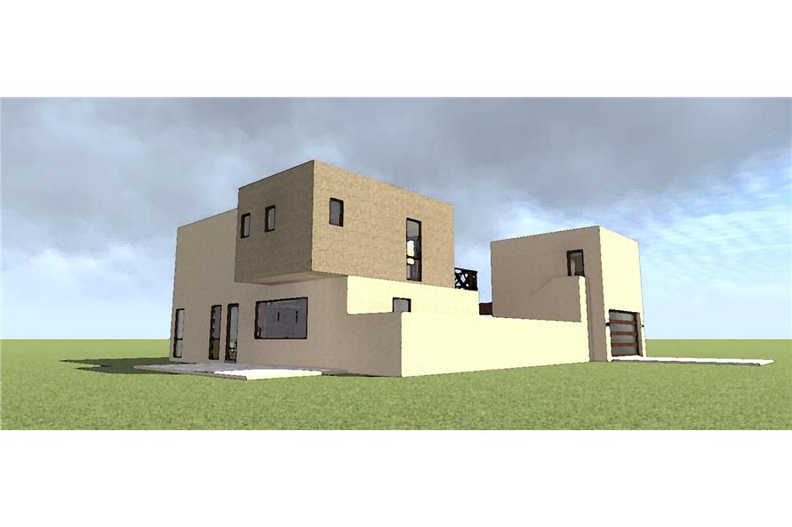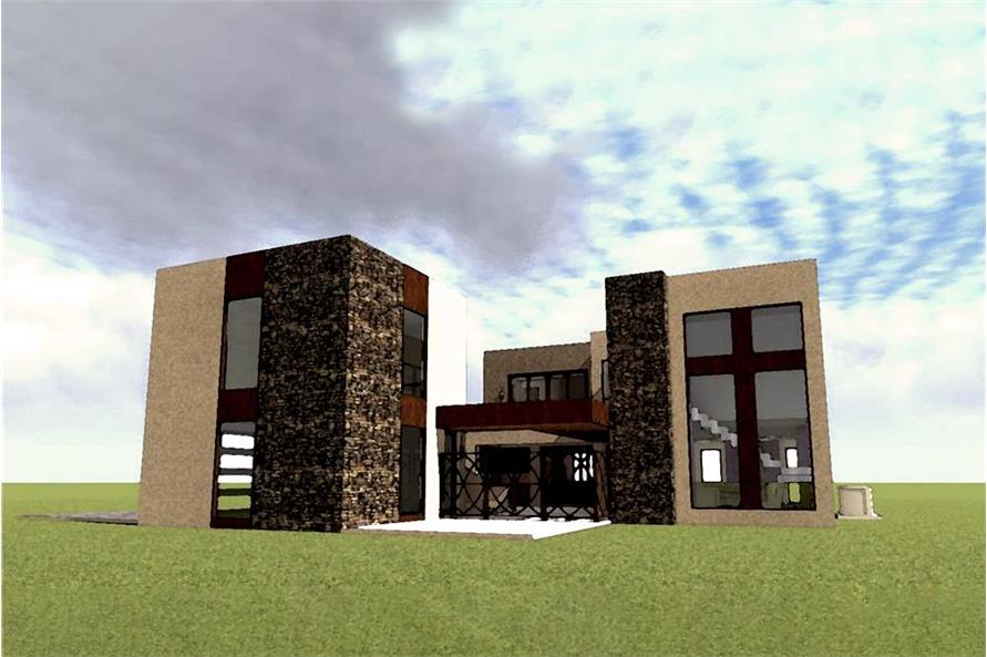 This elegant Modern home plan with California-style influences (House Plan #116-1078) has 3,100 square feet of living space. The two-story floor plan includes four bedrooms, three full bathrooms, and one half bath.