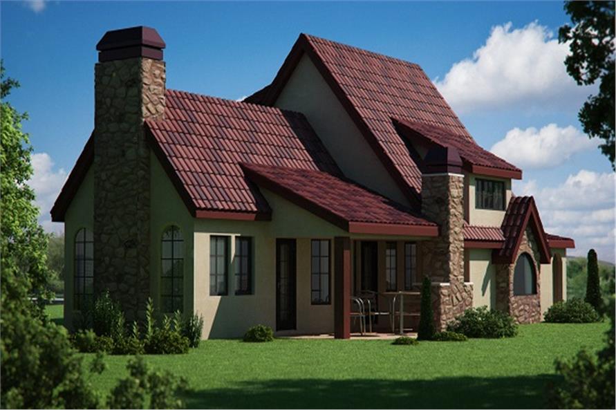 This is a charming cottage house plan with European styling. The exterior features stucco, stone with interesting roof lines. The front to back floor plan is also great for narrow lots. The master suite has plenty of room with his and her vanities in the bathroom. Lastly, the covgered patio has a fireplace for outdoor entertaining.