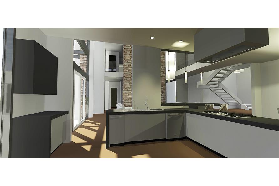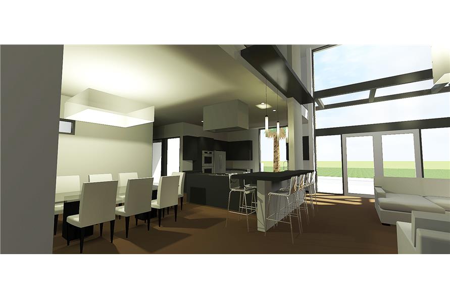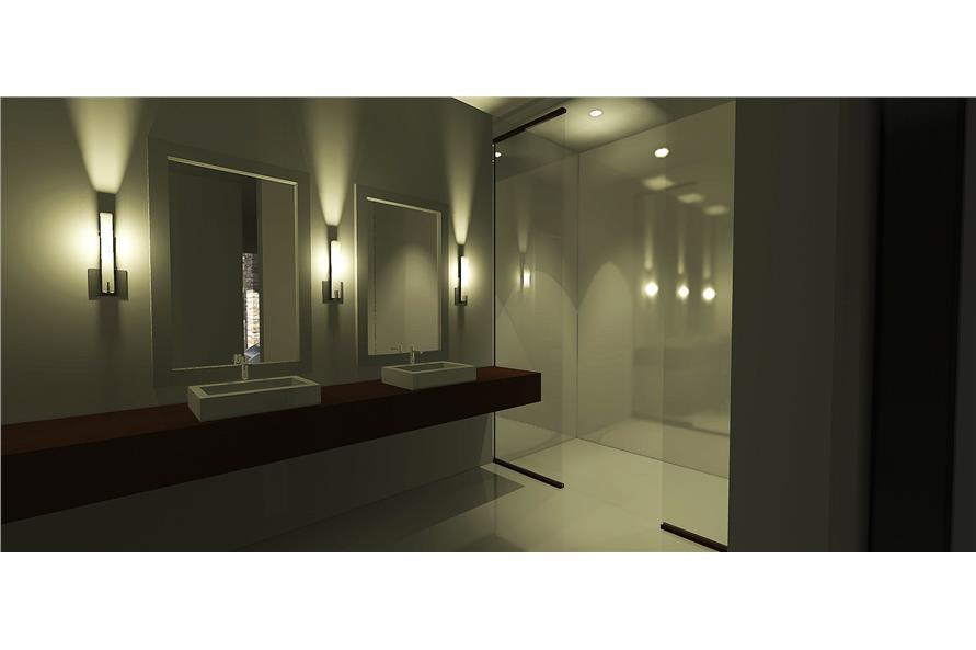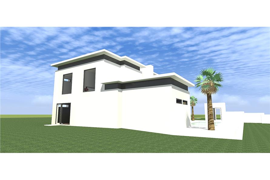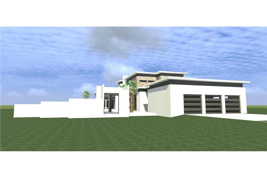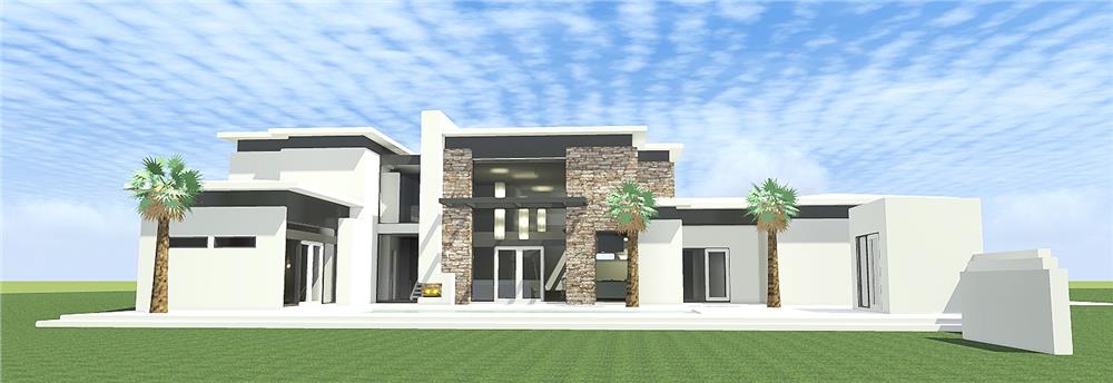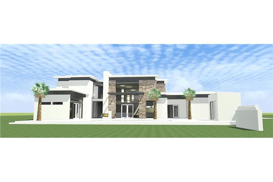 This bold, Modern style home plan with a California vibe has 3885 square feet of living space. The 2-story floor plan includes four bedrooms, three full bathrooms, and one half bath.