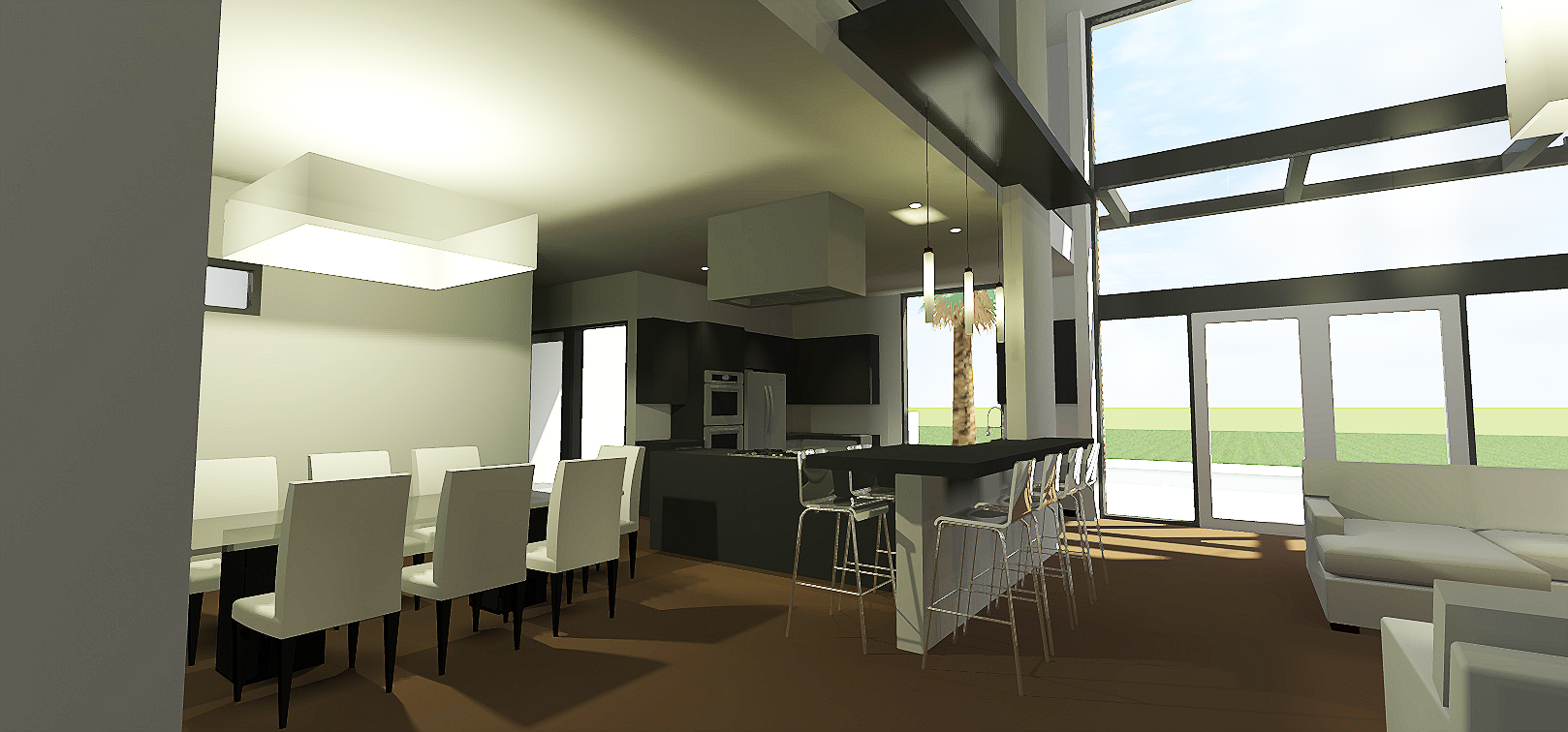 The house plan has two bedroom suites downstairs and two upstairs. The large living space connects with the dining, kitchen, and upstairs loft for an open entertaining area. There is a total of 5,297 SF (including unconditioned space) under the roof. The standard version of this plan is designed with a concrete slab on grade. The exterior walls are 2x6 wood...