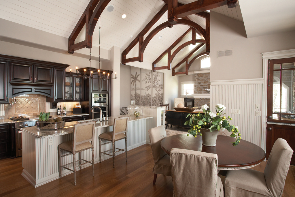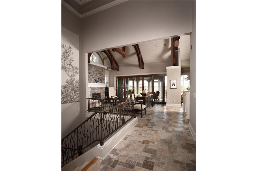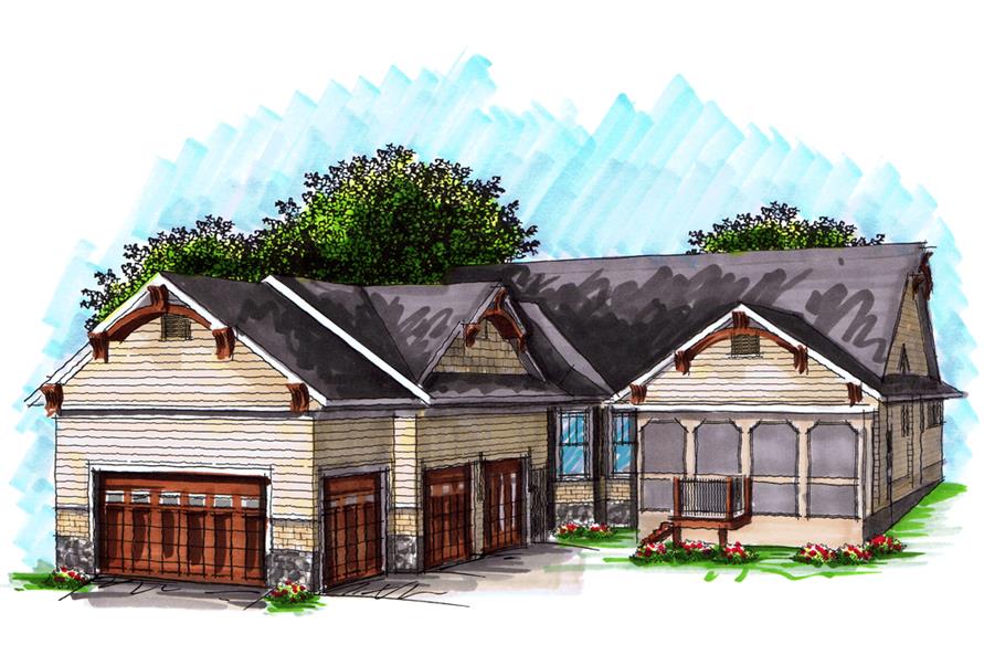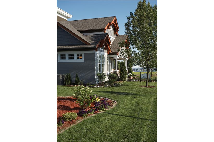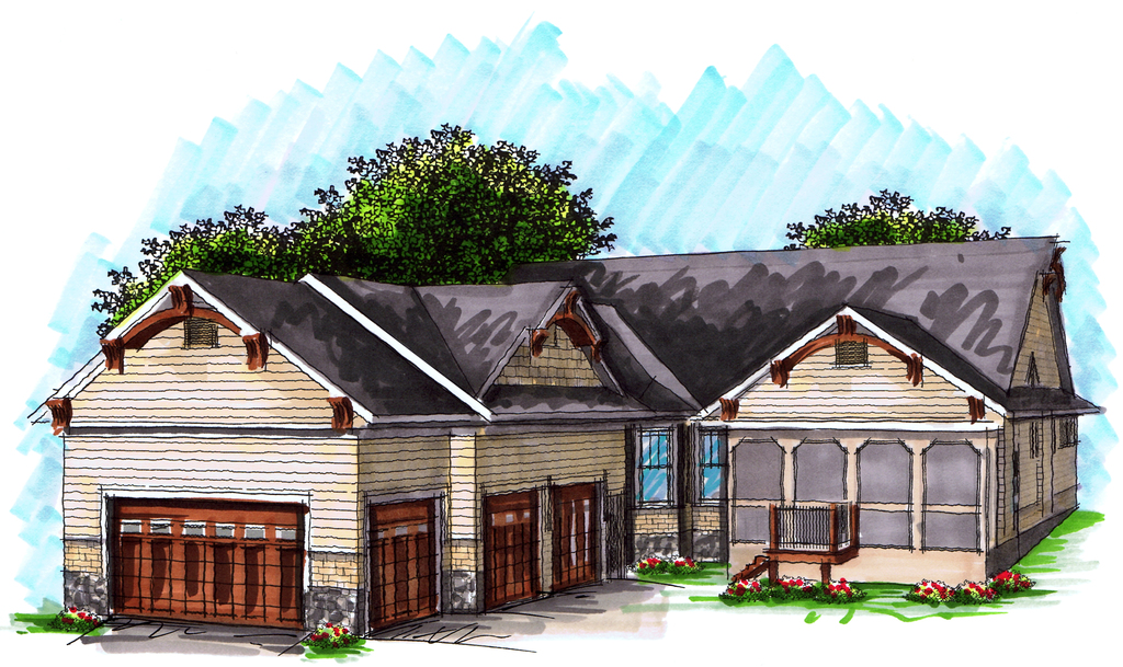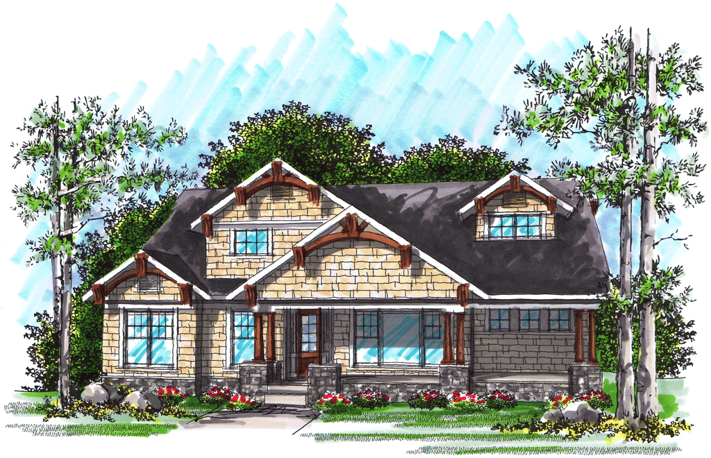 Rustic beamed and vaulted ceilings, interior and exterior fireplaces and an open floor plan are just some of the exceptional details found in this craftsman house plan. The main level is 2,394 square feet with a great room, kitchen, dining room and screened porch work together to create a living space that’s large enough for entertaining the entire family. The 1689 SF finished basement has space for 2 bedroom and rec room. This plan is also designed with a rear load garage.