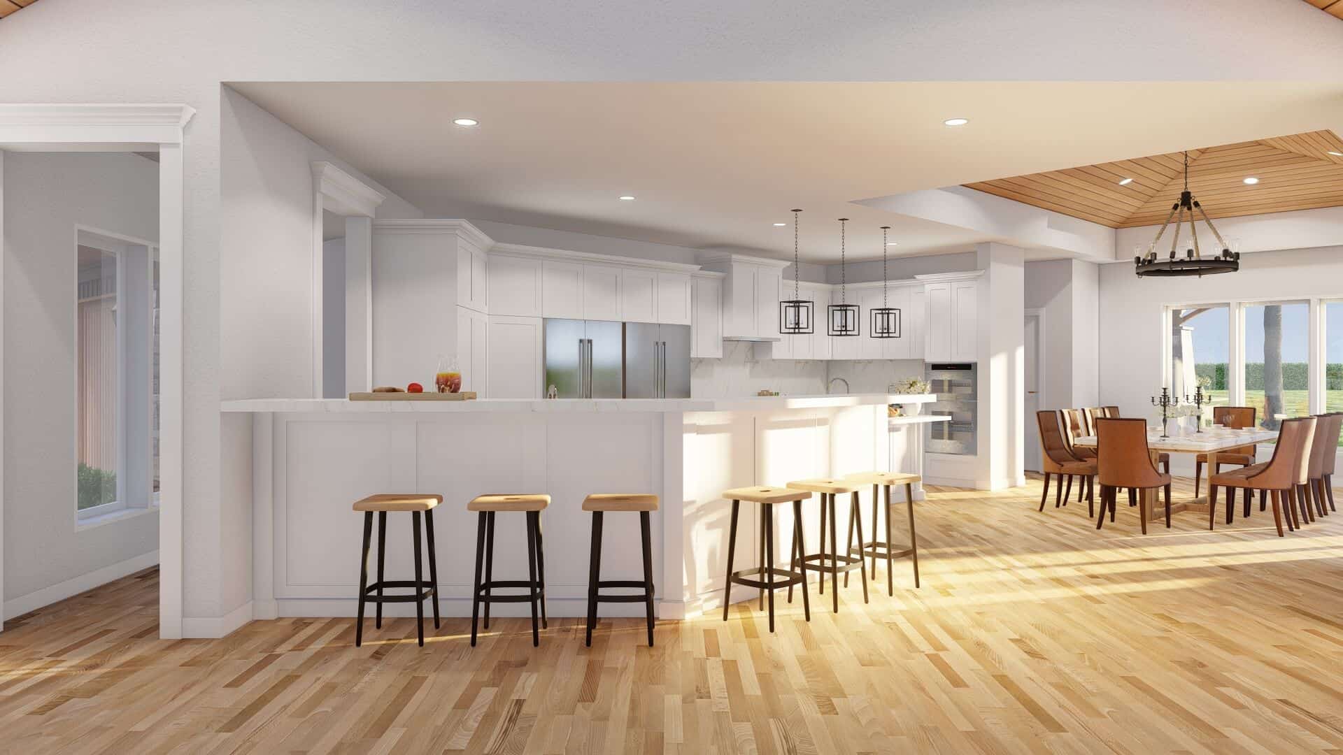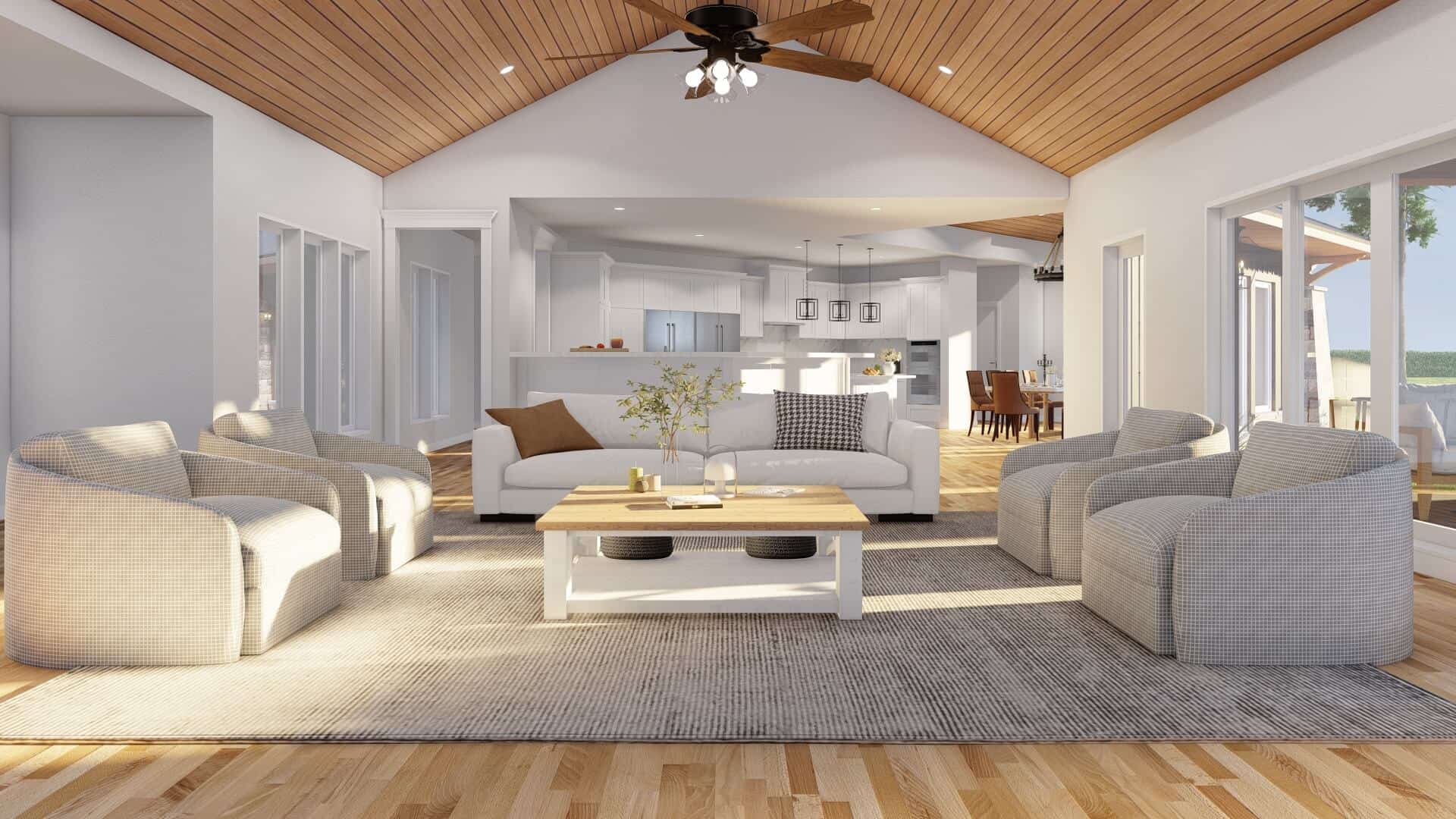 First things first, it's a one-story ranch-style home with a thoughtful layout. It features three generously sized bedrooms, each with its own full bathroom, plus an additional half bath for guests. The heart of the home is the Great Room, with a vaulted ceiling that adds a touch of grandeur to the space.