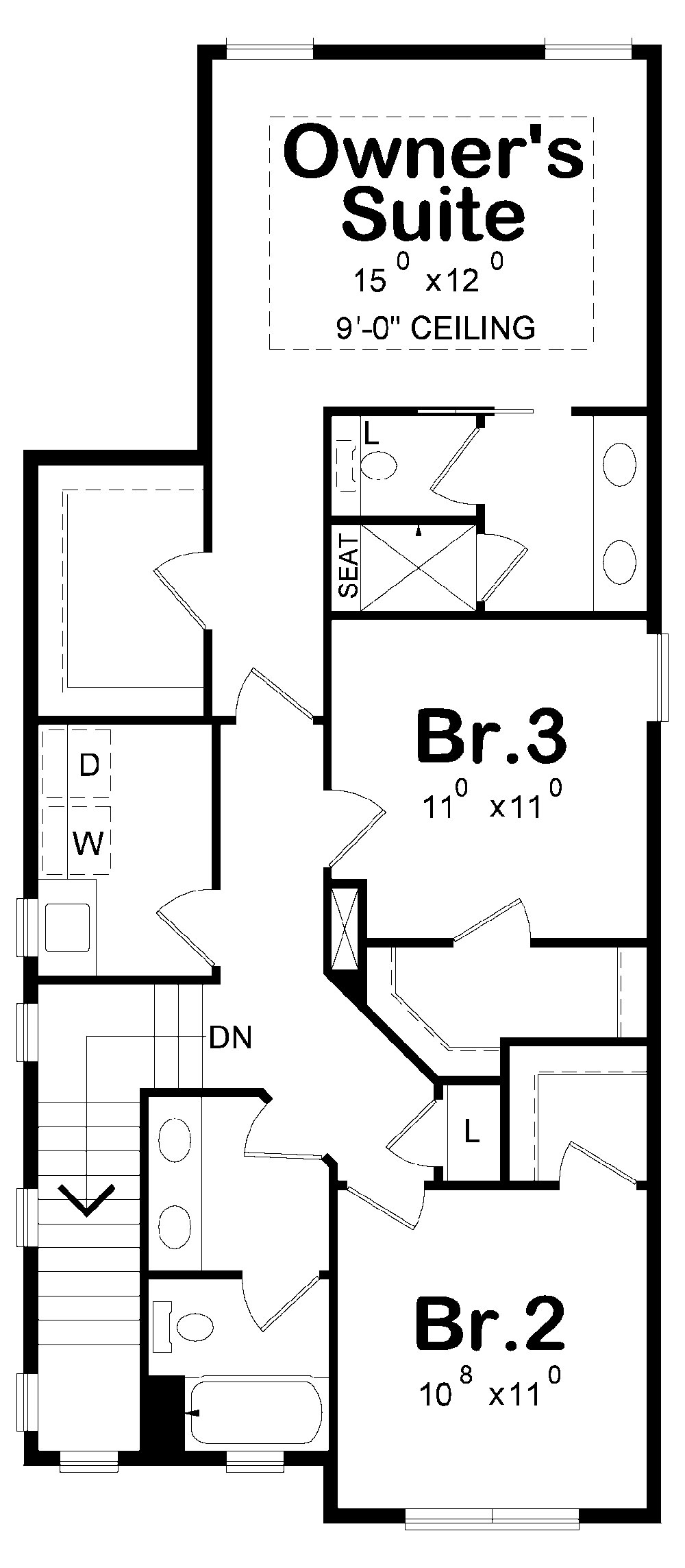 This striking Craftsman style home has over 1900 square feet of living space. The two story floor plan includes 3 bedrooms and 2 1/2 bathrooms. The exterior of this home has a graceful covered front porch. Inside, this house design's floor plan includes a well-designed kitchen island.