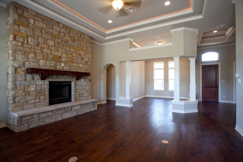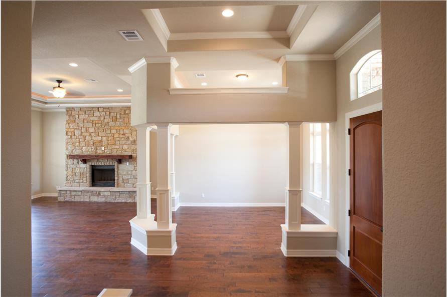 This striking Texas-style home plan with Craftsman details is spacious yet comfortable with its well-designed open floor plan. Walking up to the covered porch, you then step inside to a comfortable foyer that seamlessly opens up into the dining room and family room. The luxurious kitchen includes a peninsula with bartop to the family room and dining nook - ideal for entertaining or spending time with family. A study (or guest room) is off the foyer - perfect for spending some quiet time or having your own home...