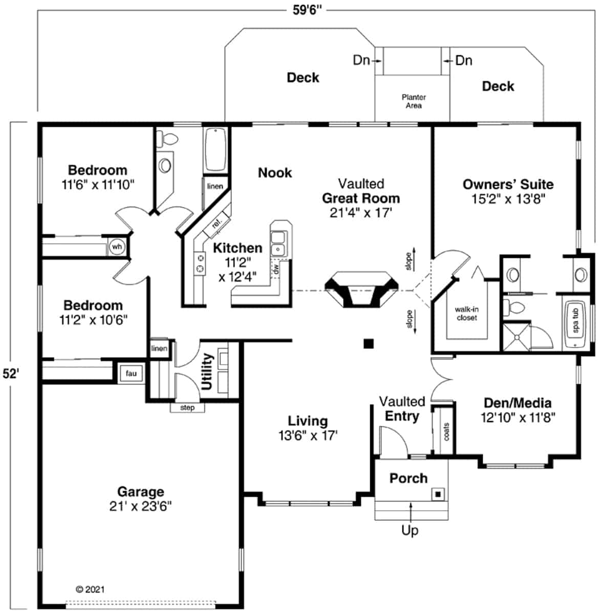 This inviting Ranch style home with Transitional design features (Plan #108-1395) has over 2020 square feet of living space. The one story floor plan includes 3 bedrooms and