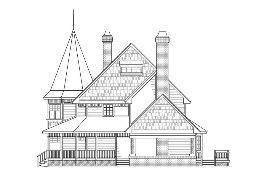 The #108-1378 home plan is a two-story, Victorian-style house plan with 2371 total living square feet. Intriguing rooflines, chimneys, windows, covered porch, and carport make this Victorian home plan a beautiful residence. The stairway wraps around the large two-story foyer, which opens to the living room. There is a two-sided fireplace in the dining room, living room, and family room.