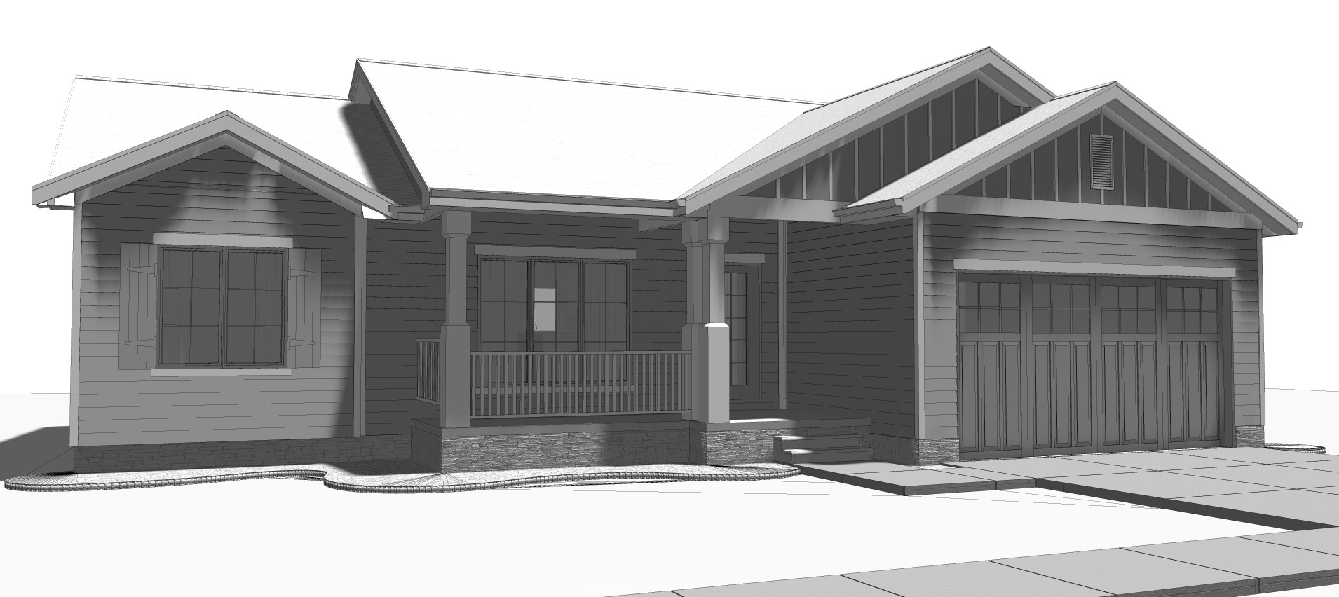This attractive Modern Farmhouse ranch with Southern influences has 1185 square feet of living space. The 1-story floor plan includes 3 bedrooms and 3 baths. A front porch greets you and your guests and you are ushered into the open floor plan. The expansive open floor plan and plenty of windows let natural light flood the home. The kitchen has an island and an eating bar.