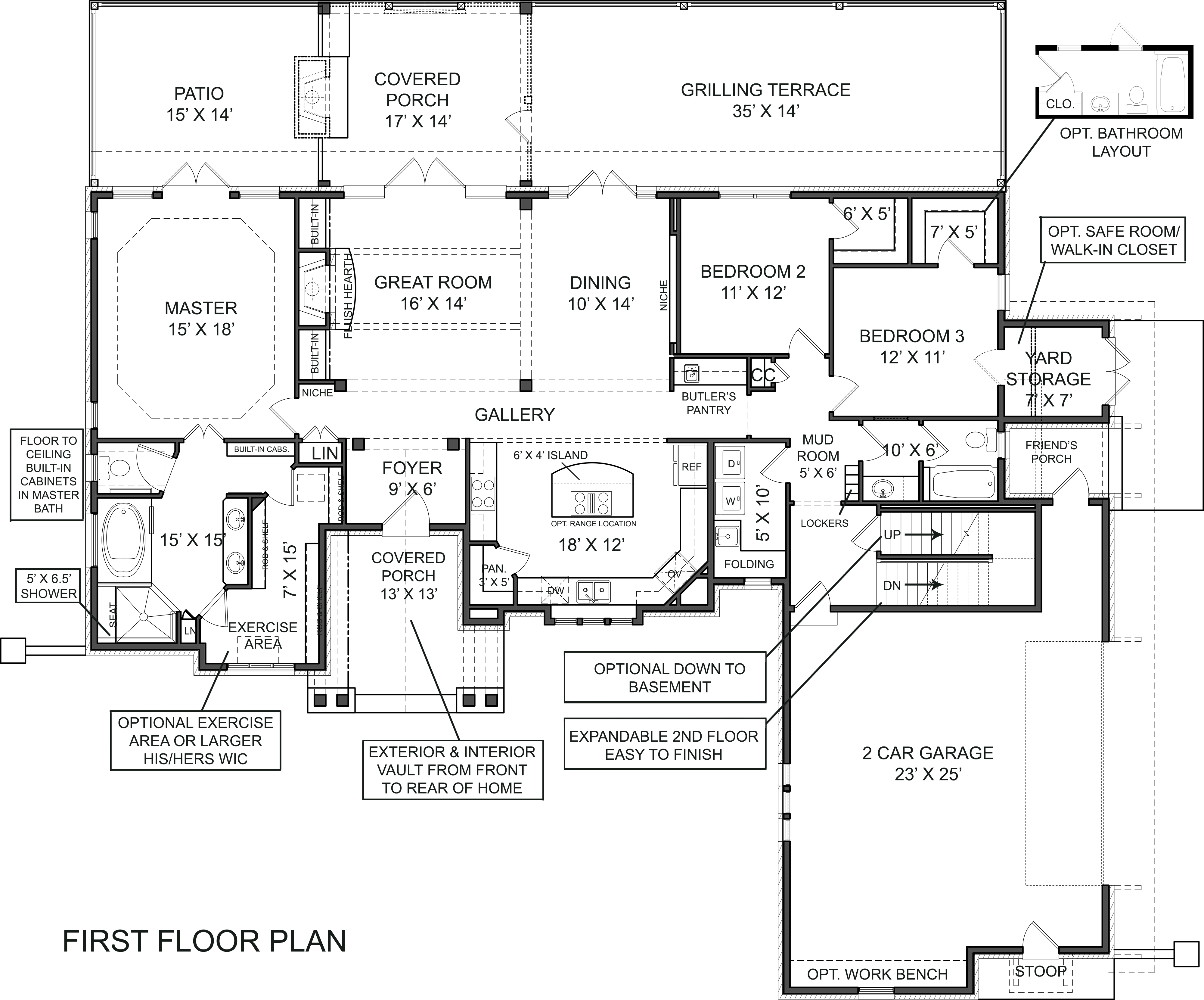 Note: Heated square footage does not include optional upper level or basement.
