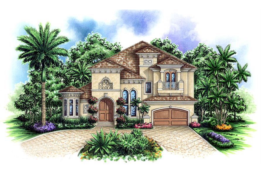 This lovely Tuscan style home with Mediterranean influences (House Plan #175-1152) has 3233 square feet of living space. The 2 story floor plan includes 4 bedrooms.