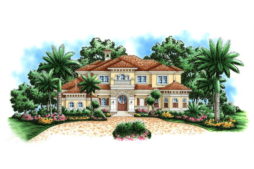 This lovely Mediterranean style home with Tuscan influences (House Plan #175-1181) has 8788 square feet of living space. The 2 story floor plan includes 5 bedrooms.