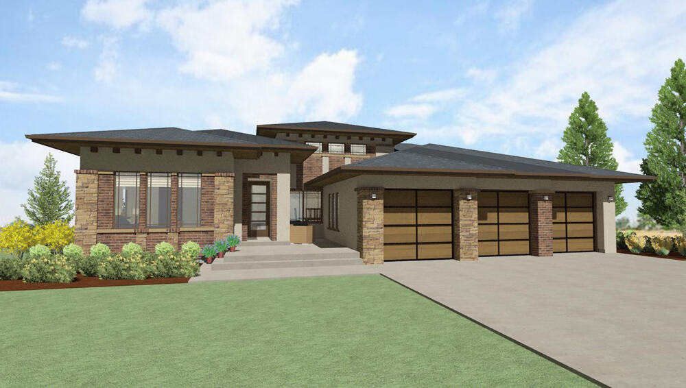 This appealing Prairie style home with Ranch influences (Plan #194-1014) has 2560–5025 square feet of living space. The 1 story floor plan...