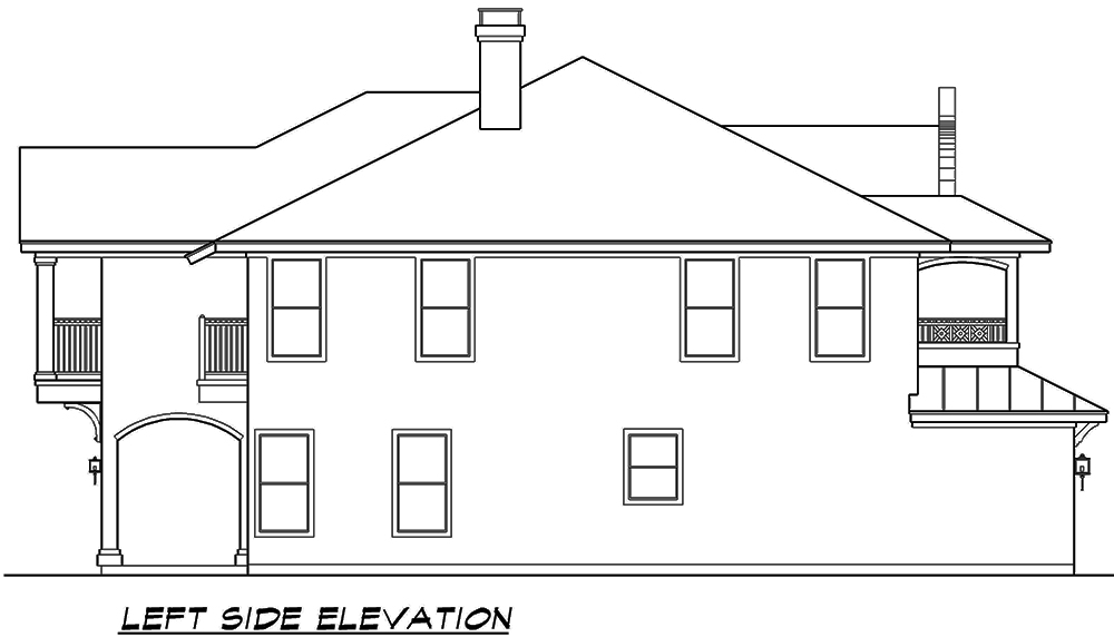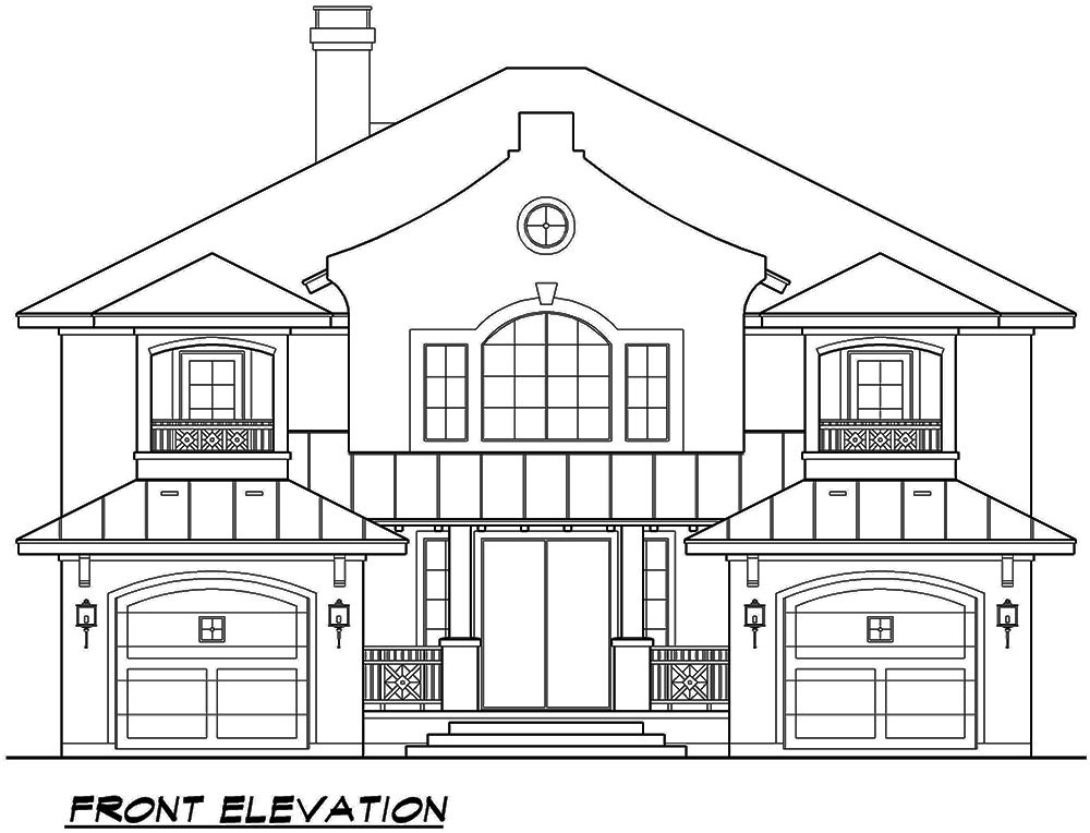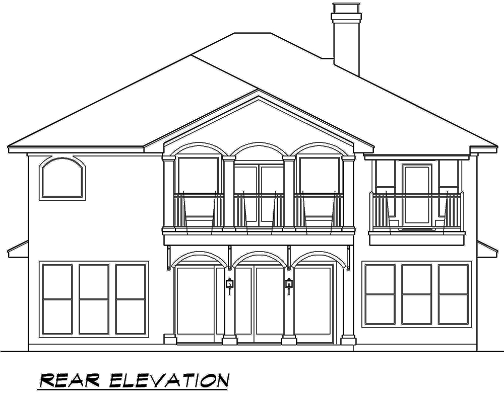 This lovely Mediterranean style home with Spanish influences (House Plan #195-1071) has 3585 square feet of living space. The 2 story floor plan includes 4 bedrooms.