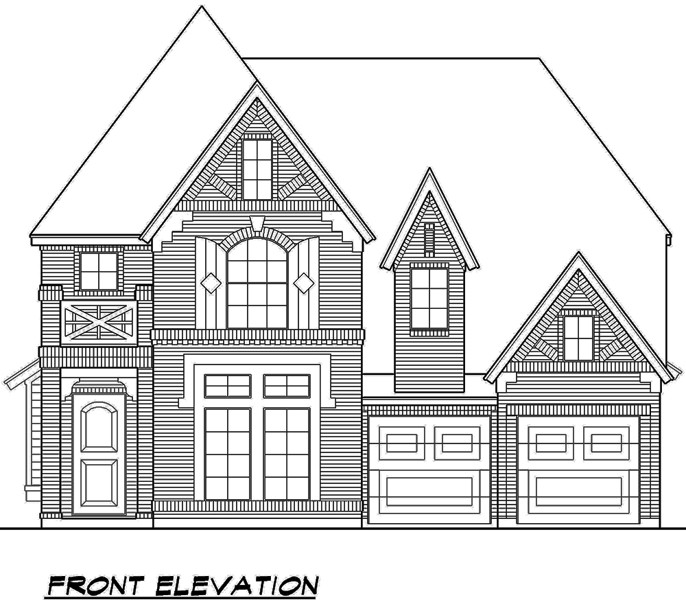 This lovely Tudor style home with European influences (House Plan #195-1122) has 3436 square feet of living space. The 2 story floor plan includes 3 bedrooms.