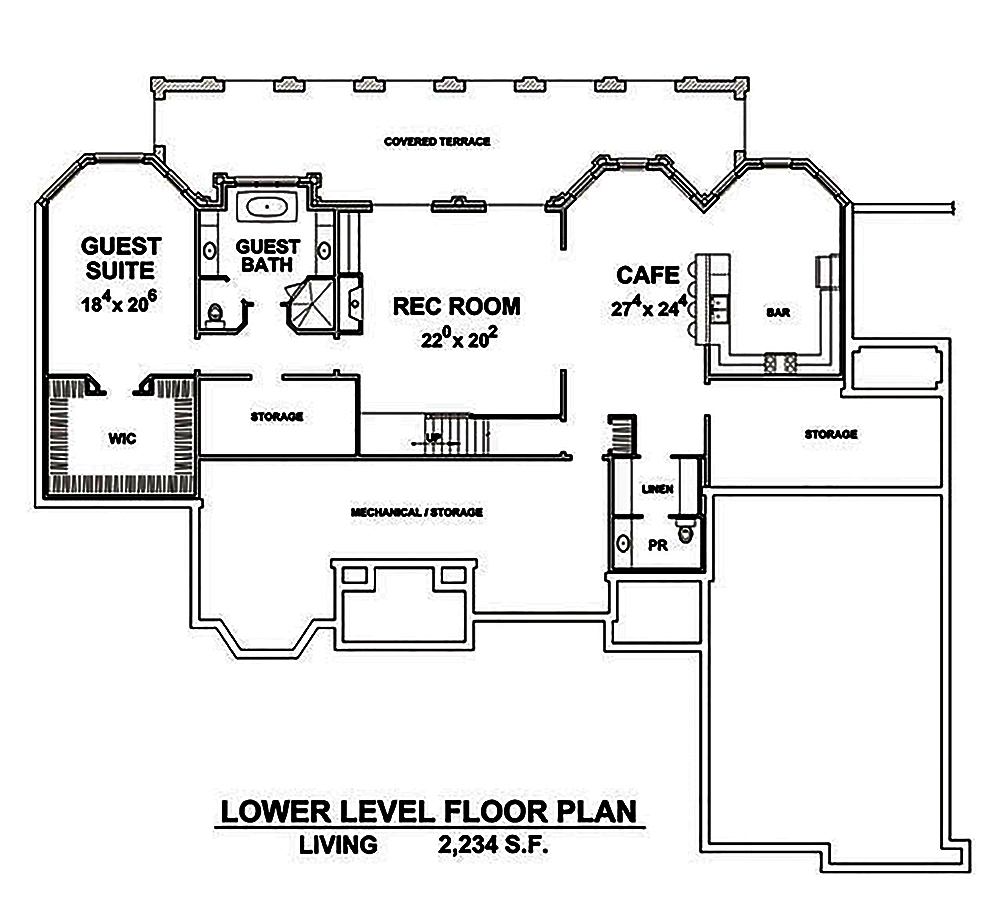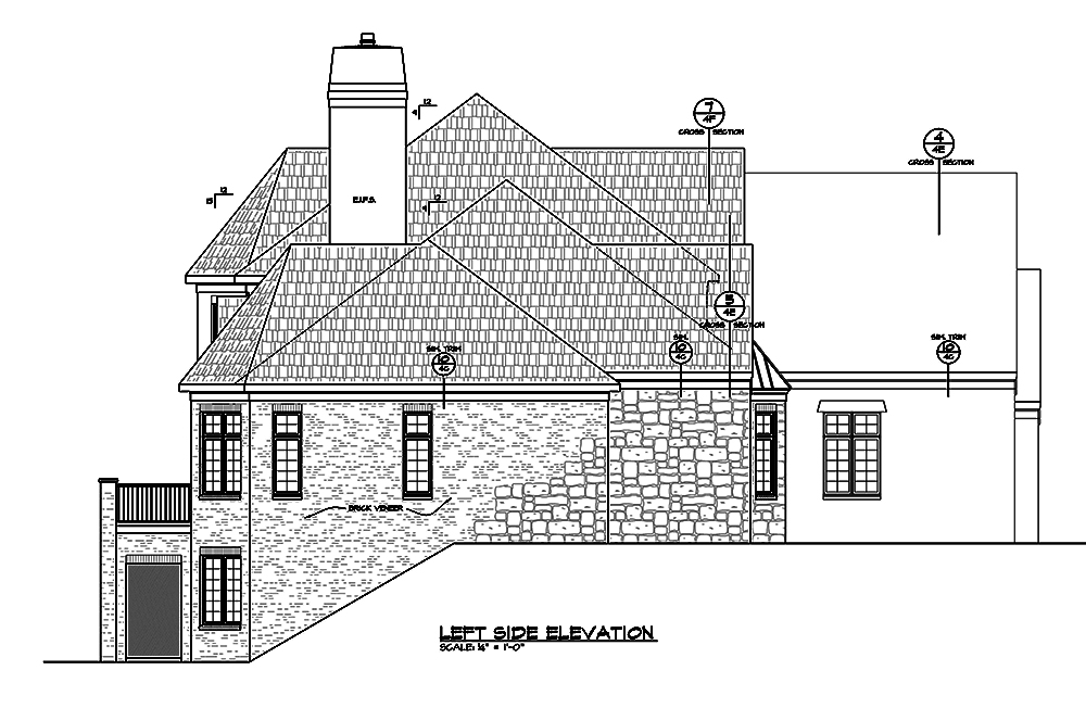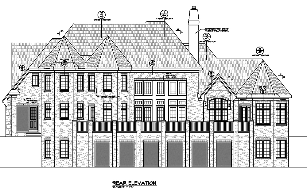 This lovely French style home with Georgian influences (House Plan #120-2474) has 4748 square feet of living space. The 1.5 story floor plan includes 4 bedrooms.