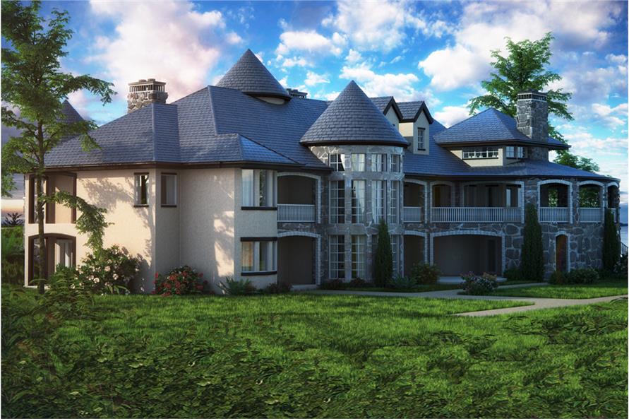 This inviting Tudor style home with European characteristics (Plan #161-1082) has 4774 square feet of heated and cooled living space. The 1 story floor plan includes 2 to 5 bedrooms. The basement, which can be finished at your option, nearly doubles the square footage and adds 3 bedrooms with ensuite bathrooms – plus other amenities – if completed according to the suggested floor plan.