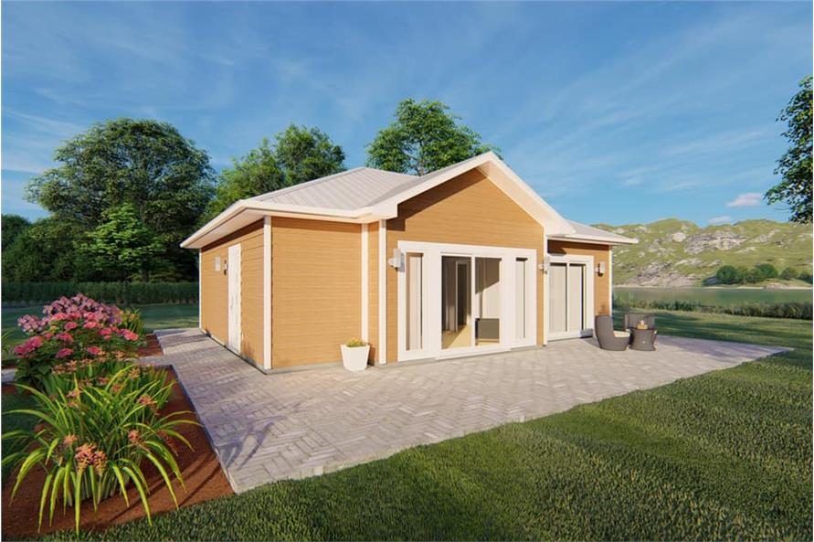 This smartly-designed small - even tiny - house plan has just 796 square feet of living space. Despite its size, the layout is airy and open giving it a more spacious vibe with the living area open to the kitchen and eating bar. A pair of sliding pocket doors lead to the bedroom suite. The home would work well as a guest house, in-law suite, or even a starter home. The 1-story floor plan includes 1 bedroom and an open layout kitchen, dining, and living area.