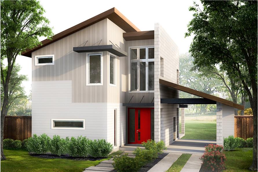 This bold, contemporary style home with Modern influences (House Plan #136-1032) has 1227 square feet of living space. The 2-story floor plan includes 2 bedrooms.