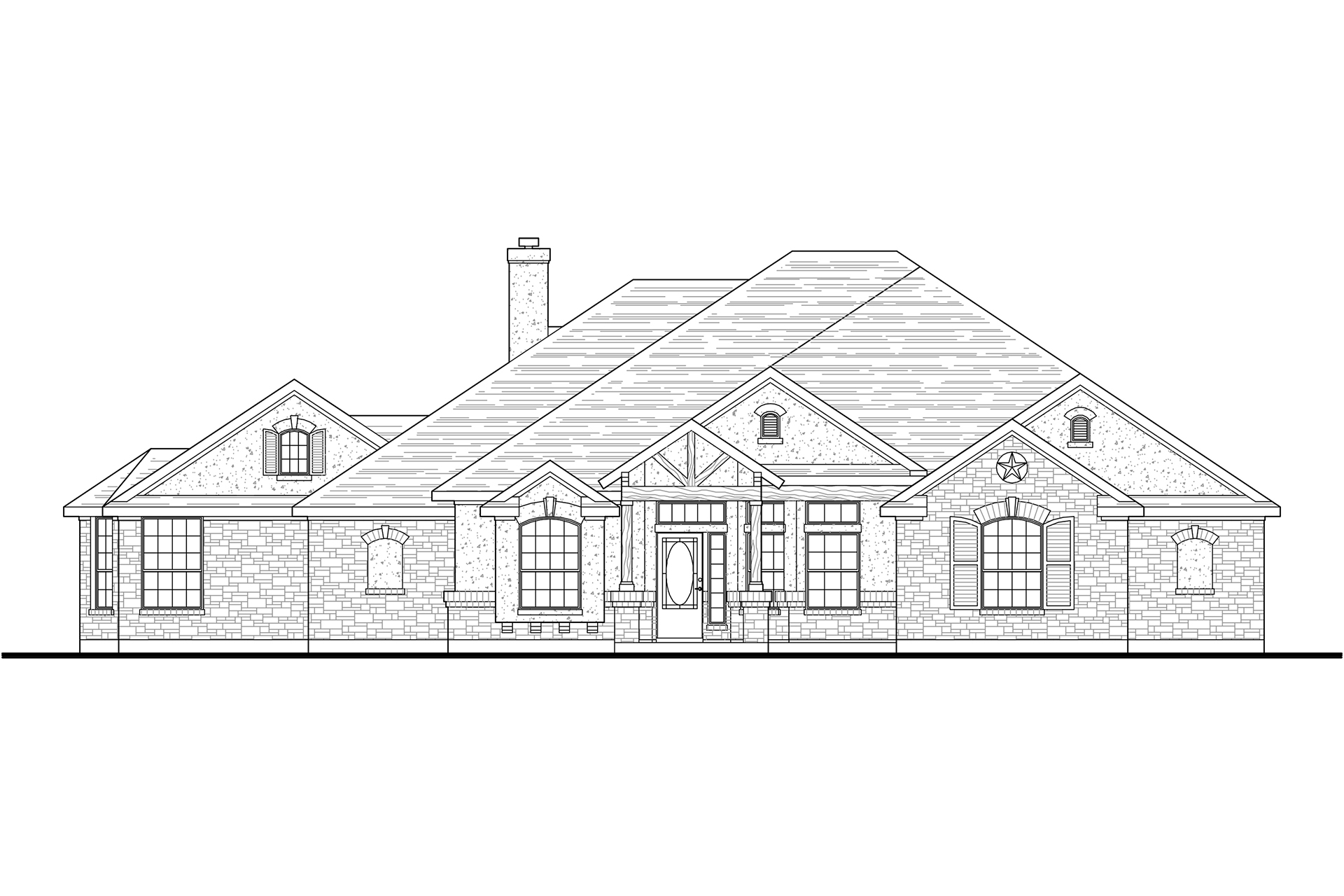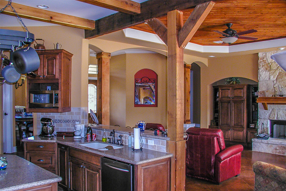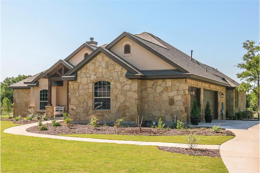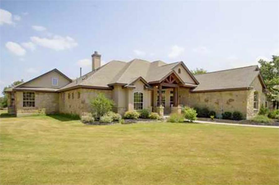 This rustic-style ranch (House Plan #136-1037) has 2772 square feet of living space. The 1-story floor plan includes 4 bedrooms, 3 full bathrooms, and 1 half bath.