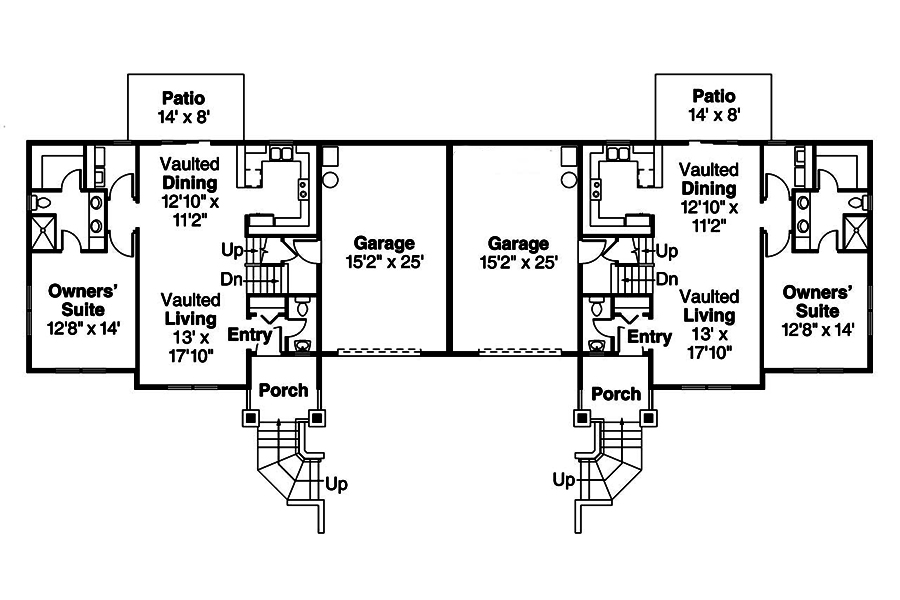 This lovely Multi-Unit style home plan with Country influences (Multi-Family House Plan #108-1847) has 1474 square feet of living space in unit A and 1478 square feet of living space in unit B. The 2 story floor plan includes 3 bedrooms, 2 full bathrooms, and 1 half bath per unit. Each unit also has a 403 sq. ft. one-car garage.