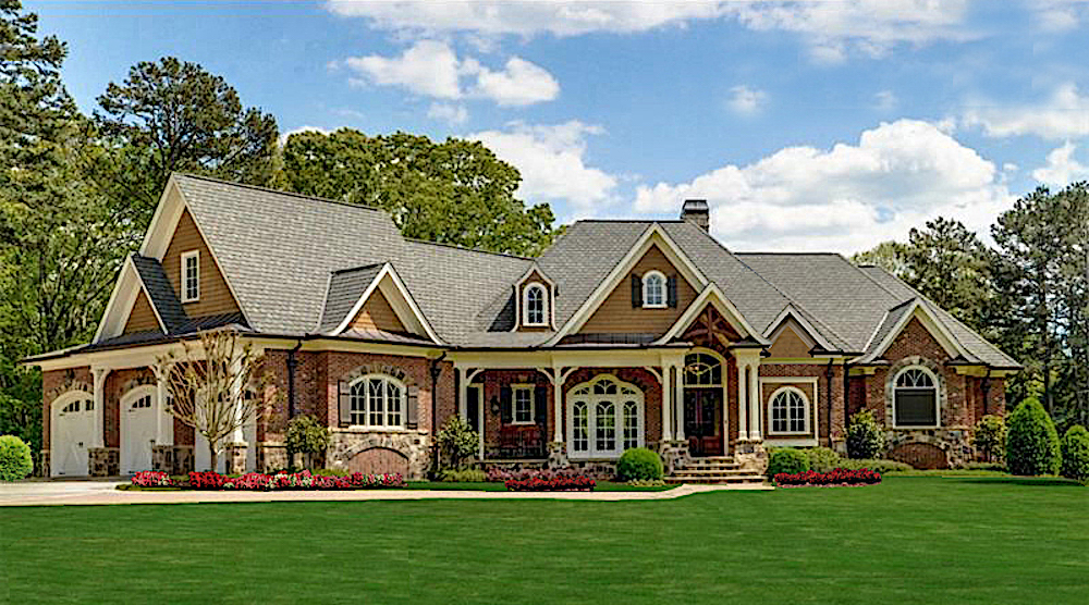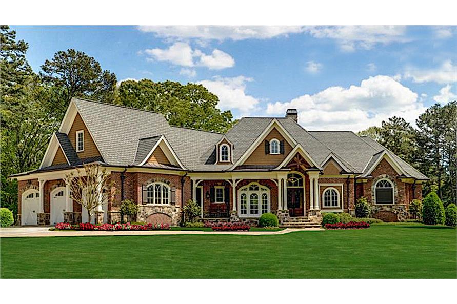 Within this luxury Craftsman manor, perfection can be found in every corner (Plan #198-1011). Every inch of its 3,999 living square feet has been used to get the best features. Step inside and the high ceiling foyer opens to the dining room on the left. The lodge room is vaulted, boasting a sizable fireplace making for a cozy night in. The chef-worthy kitchen has an impressive island. Steps away is the breakfast area, enhanced with large windows allowing for natural light to fill the home. The keeping room is a splendid place to rest after a fantastic meal. Plenty of porch space...