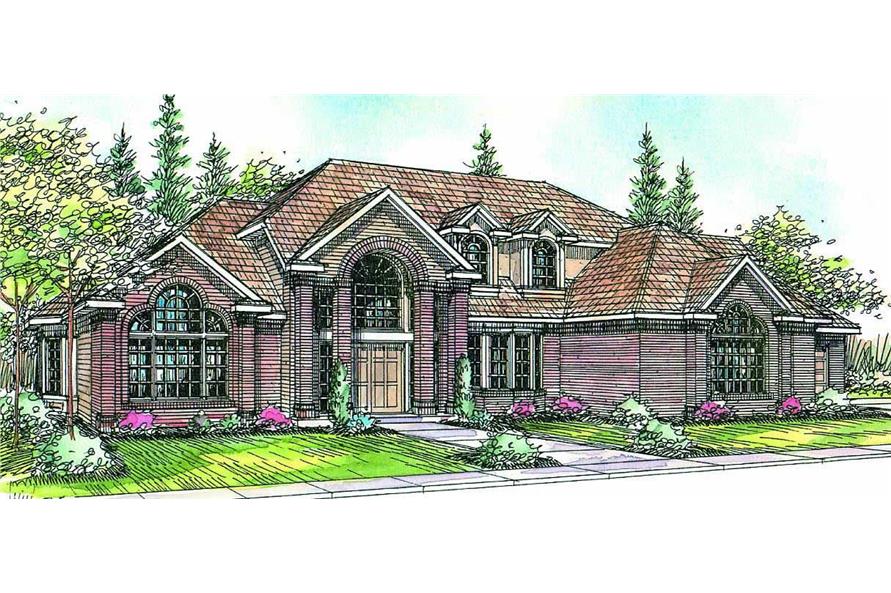 The #108-1424 home plan is a two story, transitional style house plan with 3649 total living square feet. This impressive estate-size traditional home plan has a two-story foyer and a great room. Fireplaces grace this space as well as the vaulted family room at the rear, which is completely open to the nook and kitchen. A luxurious owners' suite and den are on the ground floor. Two more bedrooms are upstairs, along with a guest room and attic.