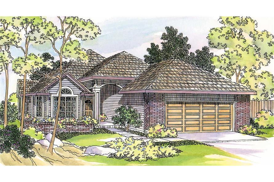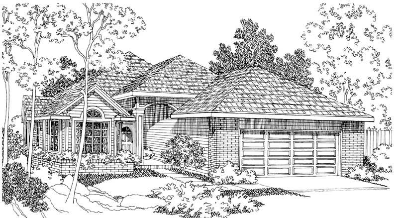 The #108-1410 home plan is a single story, traditional style house plan with 1743 total living square feet. This one story, traditional home plan features a wide window bay that expands the bright front room, a study, parlor or office. The naturally illuminated great room is open to the kitchen which includes a long eating bar. Utilities are close to the kitchen.
