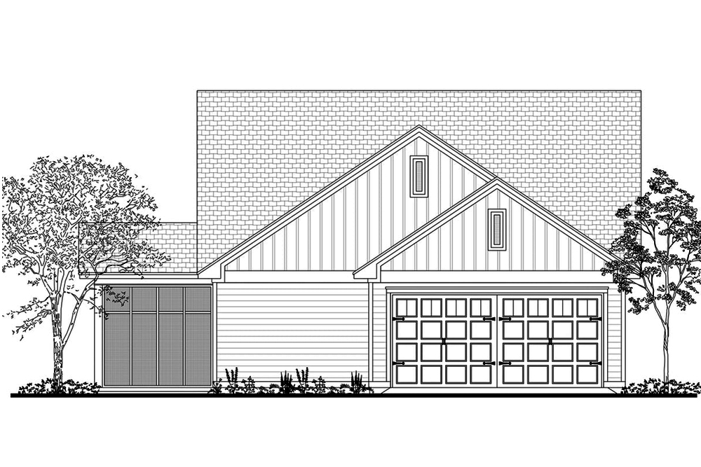 The facade and narrow layout of this comfy Country style home (Plan #142-1193) belie its size and utility. Because the garage is a rear-entry type at the back of the house, the home has the look of a smallish cottage or farmhouse. But with 2219 square feet of living space, it has a lot to offer. And 10- and 11-foot-high ceilings make the home feel even bigger than it is.