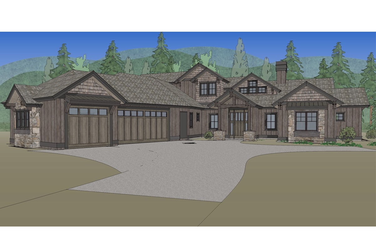 This 2,554-square-foot cozy Rustic Craftsman style lodge house will provide you with all the comfort you need for you and your loved ones. At its mid span is an inviting covered entry foyer leading into the Great Room (living, dining, kitchen) and hallway connecting to private spaces like the master suite and the other two bedrooms, each with its own walk-in closet and a shared Jack and Jill full bathroom. You will most definitely enjoy the kitchen island at the center of the living space, providing you with a comfortable area where you can eat healthy a...