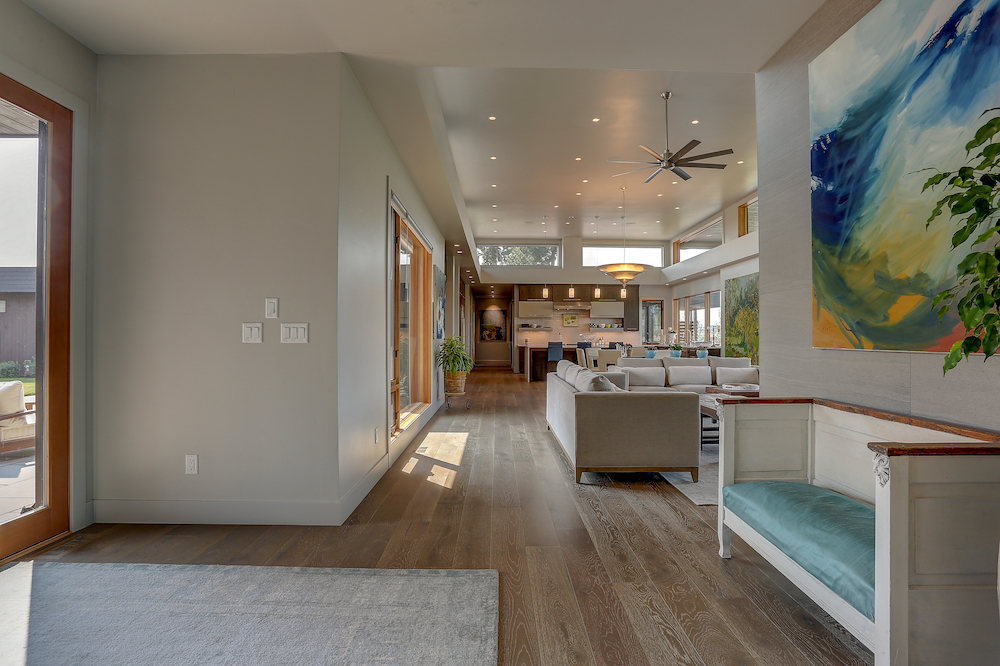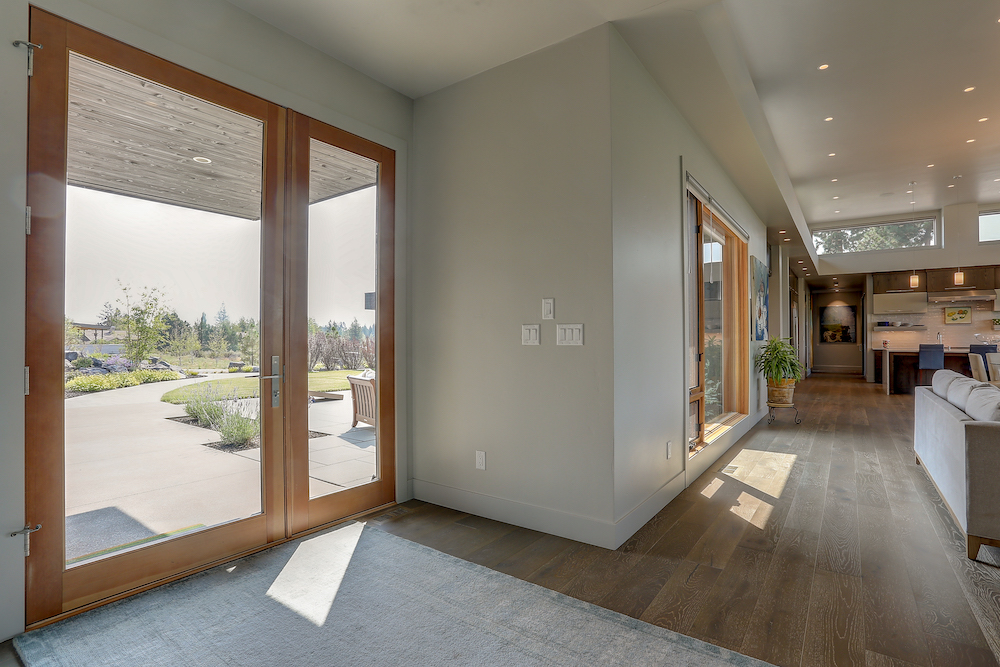 The famous architect Le Corbusier describes “the house” as a highly functional machine that breathes, lights up, shades, protects, and provides for its occupants. Such a description clearly applies to this sleek Modern style home with flat roofs. The house has a heated area of 3,665 square feet and a total of 4,713 square feet of finished and unfinished space under its roof.
