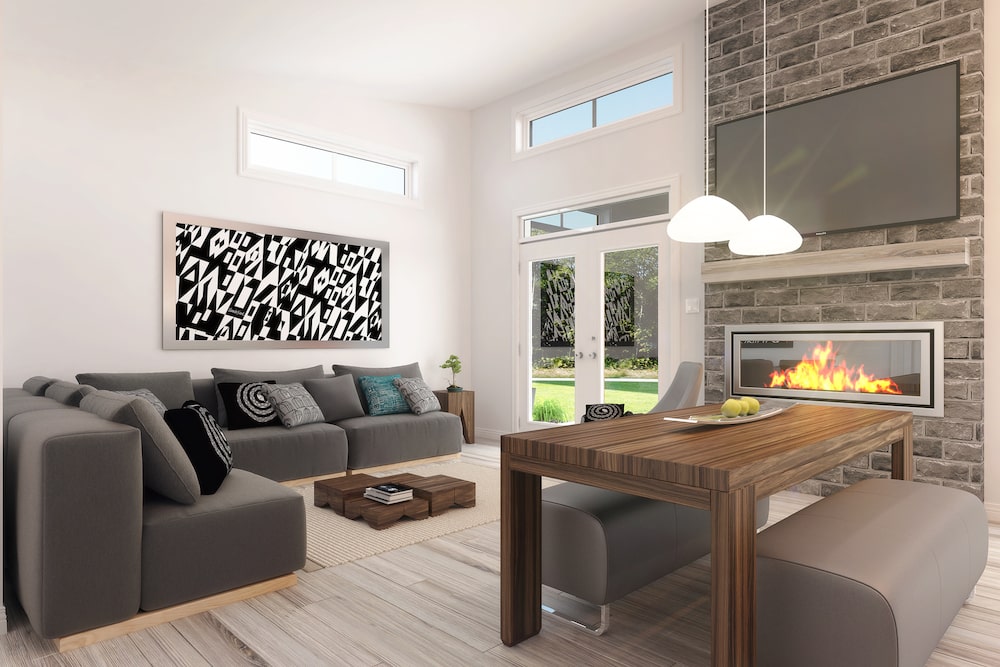 One of the home's best features is the cozy fireplace, which creates a warm and inviting atmosphere in the living and dining areas. The house features an L-shaped kitchen, which is both functional and stylish. The design of the house is very efficient, with no wasted space and every square foot being used effectively.