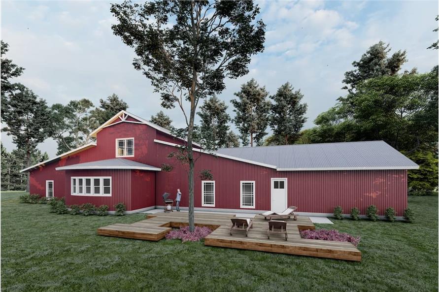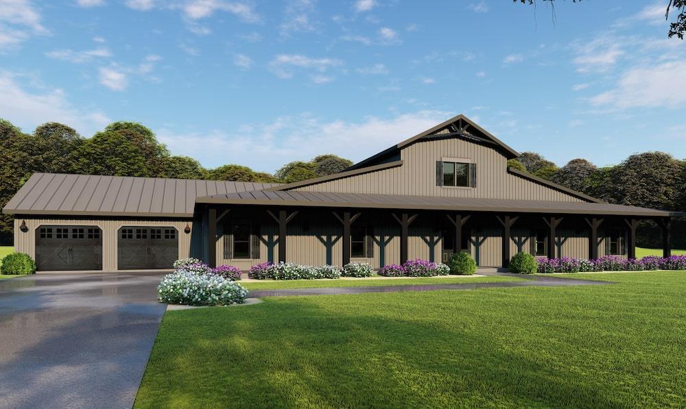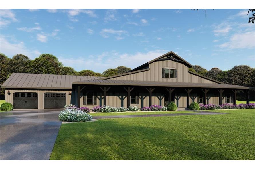 This floor plan offers luxurious features you may not expect in a barn-style home. Double doors lead into the Grear Room, dining area, and chef-worthy kitchen. The spacious master suite boasts his-and-her walk-in closets. The four other bedrooms all open onto a kids' family room while also sharing two split baths. With 3277 living sq ft, the 1-story floor plan includes 5 bedrooms plus an unfinished loft.