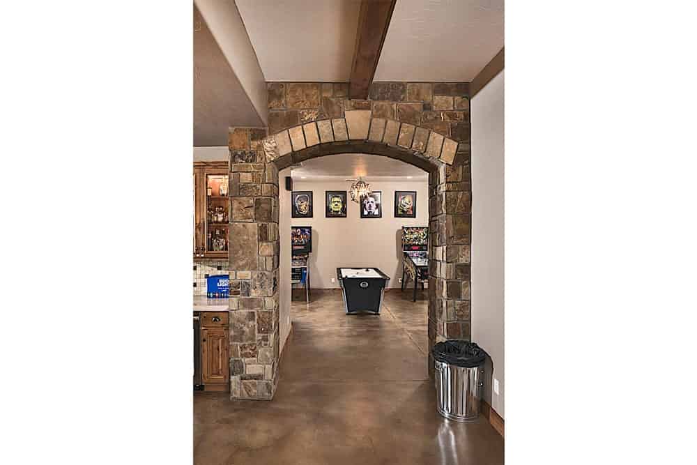 This will be one of the best 2-story Rustic Contemporary style homes on your list: the natural use of stone rubble gives the house its distinct rustic and rugged appeal. The house covers a total heated area of 4,917 square feet with an optional finished 3134-square-foot lower level that also has 370 square fet in unfinished storage space.