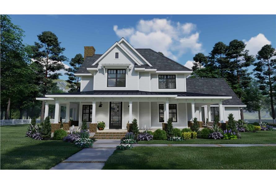 Front elevation of Farmhouse home (ThePlanCollection: House Plan #117-1134)