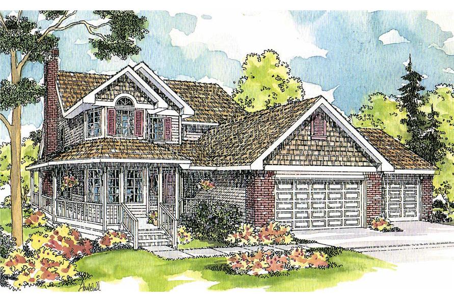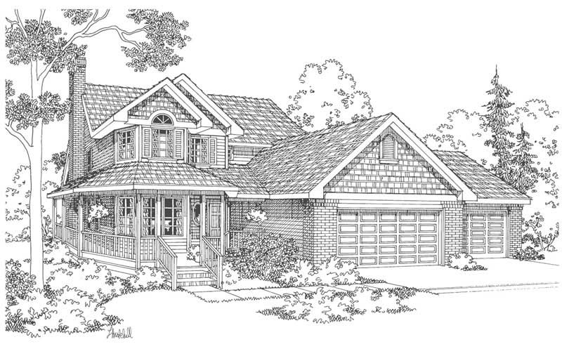The #108-1456 home plan is a two story, country style house plan with 2540 total living square feet. This inviting country home plan has a wrap-around porch and a three-car garage. There is a two-story great room and that columns flank archways to the vaulted, skylight dining room. More skylights in the posh master suite with a sitting bay and a huge walk-in closet.