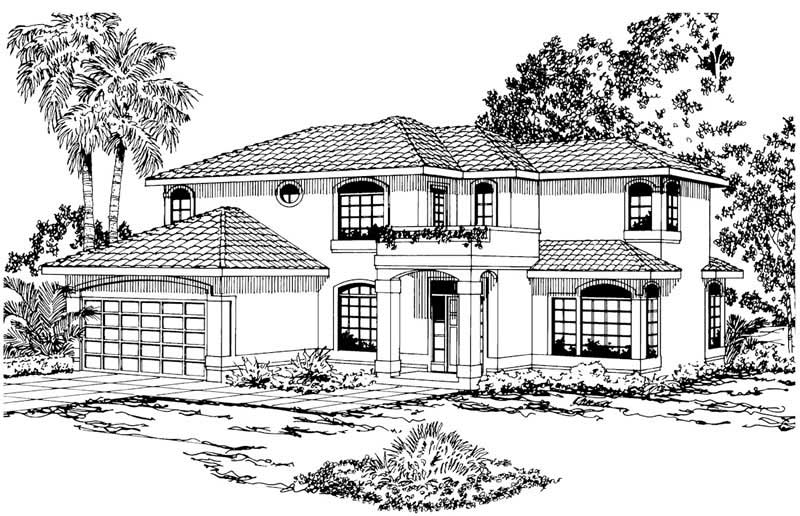 The #108-1363 home plan is a wonderful two story southwestern style house plan with 2635 total living square feet. Stucco details accents, arched windows, and bold stucco columns are all part of this southwestern home plan. Wide bay windows brighten and expand the family room & master suite. The kitchen is open to the nook and family room with access to the screened porch.