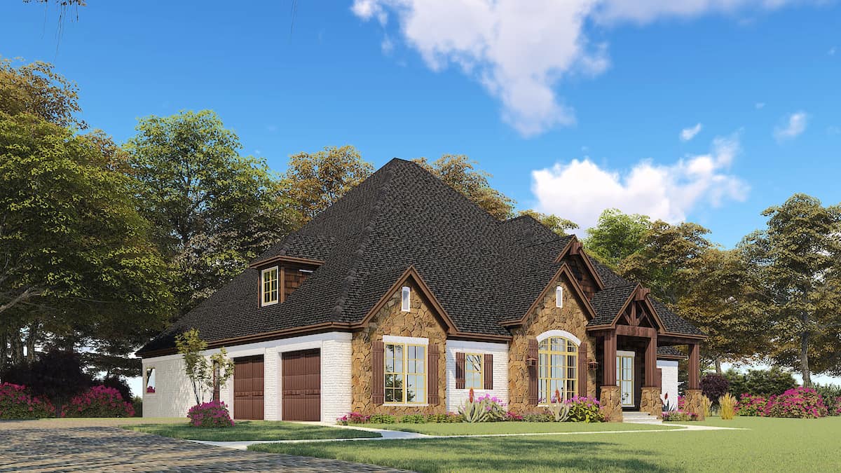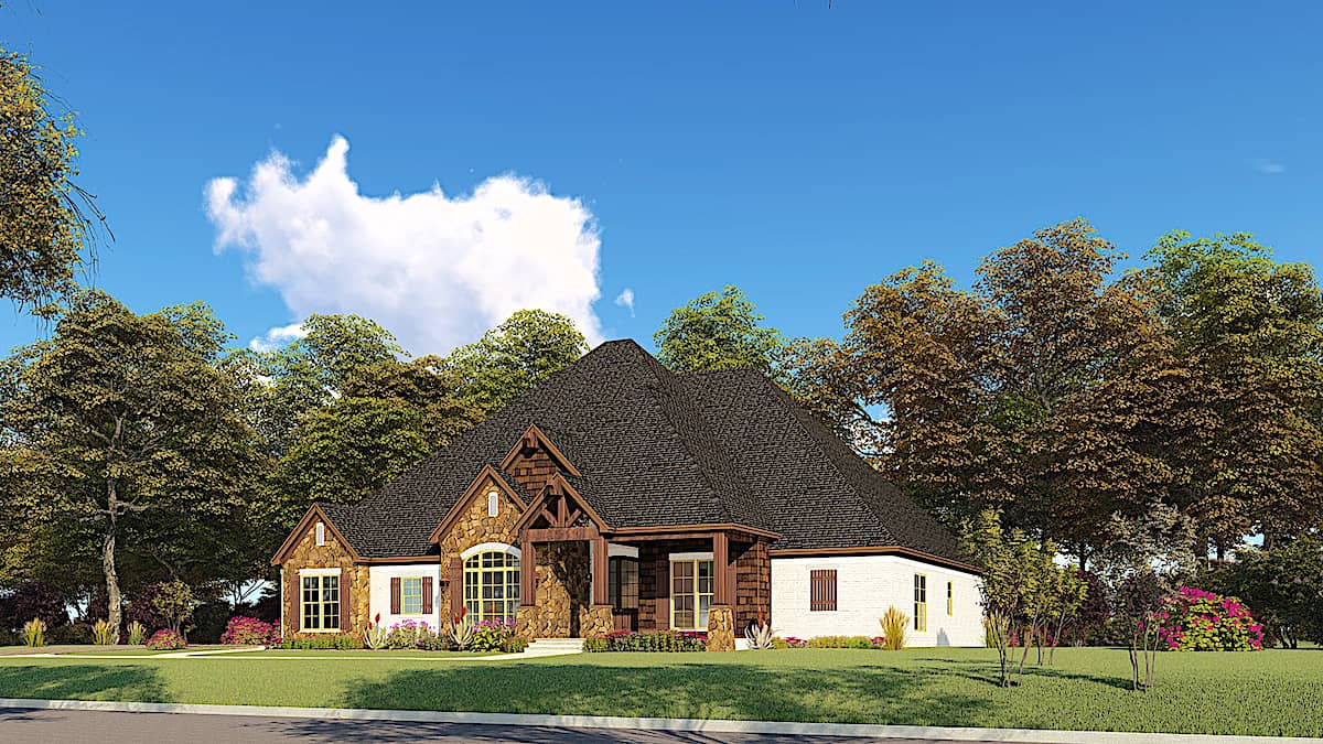 An impressive feat of architectural design achievement is displayed by this French-Southern home. The exterior and interior of the home project a very relaxed and homey yet practical ambiance that's just perfect for a growing family. The beautiful 1-story floor plan has 2520 square feet of heated-cooled living space and includes 4 bedrooms plus an upstairs bonus room over the garage for future development.