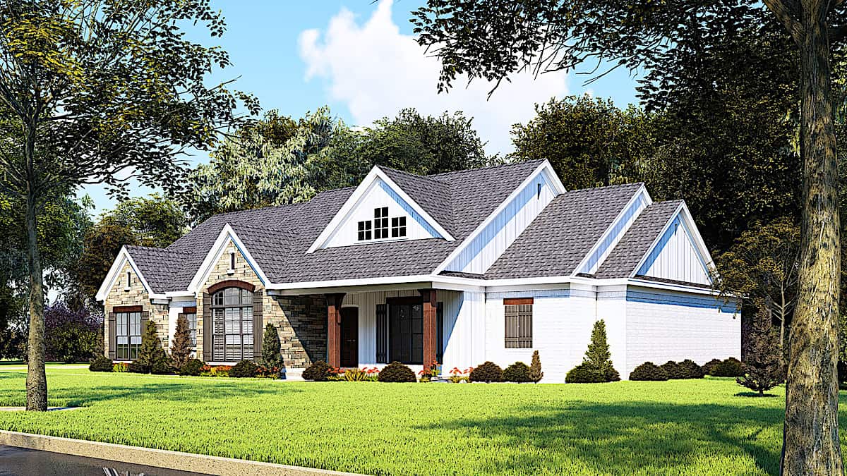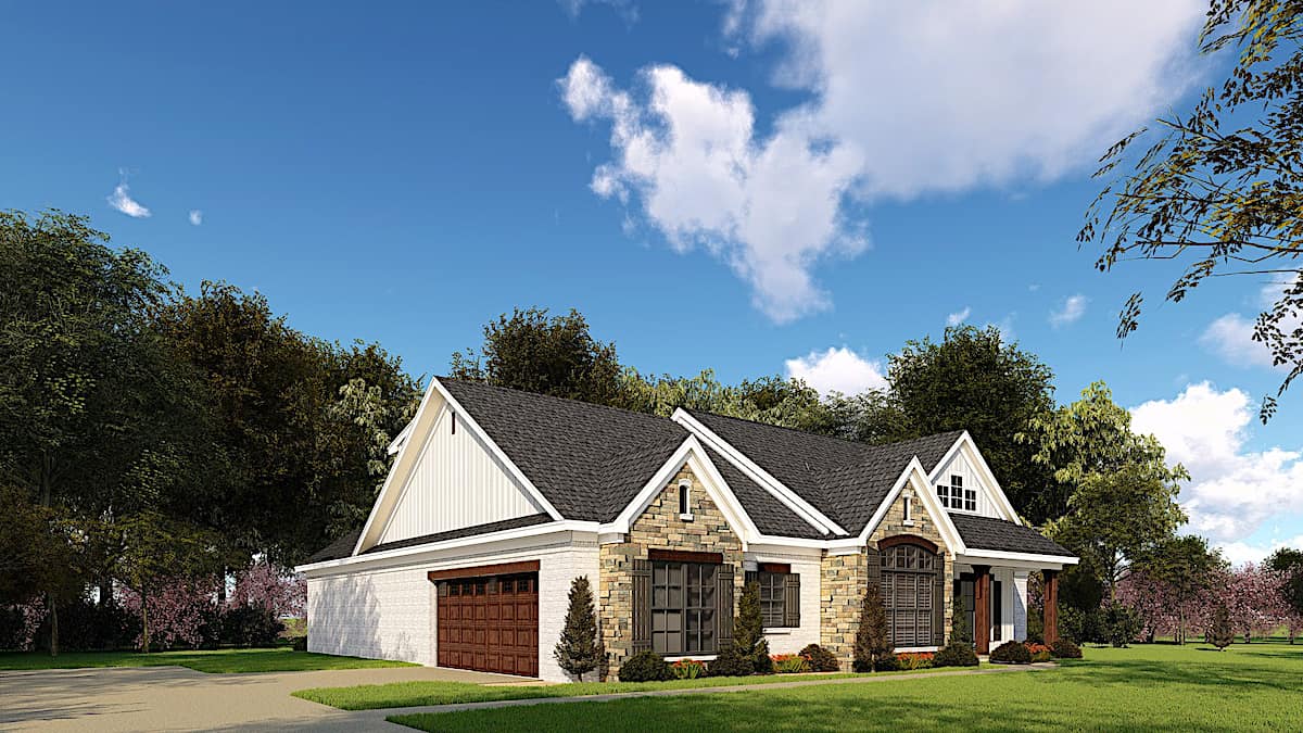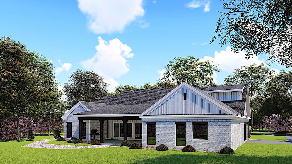 A lovely view during daytime and captivating at night, this Rustic Ranch style home has covered porches front and back, whcih will allow you to enjoy the outdoors and associated warm-weather activities. A variety of lovely windows allowing lots of natural light add charm to the house. This well-done 1-story floor plan has 2112 square feet of living space and includes 3 bedrooms.